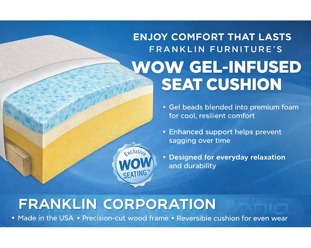 Franklin Furniture’s WOW gel-blended foam seating is designed to deliver lasting comfort and dependable support for everyday living. By blending cooling gel into high-quality foam, this seating system provides a plush yet resilient feel that helps cushions maintain their shape and resist sagging over time. The result is comfortable seating that feels supportive from the moment you sit down and continues to perform with daily use.