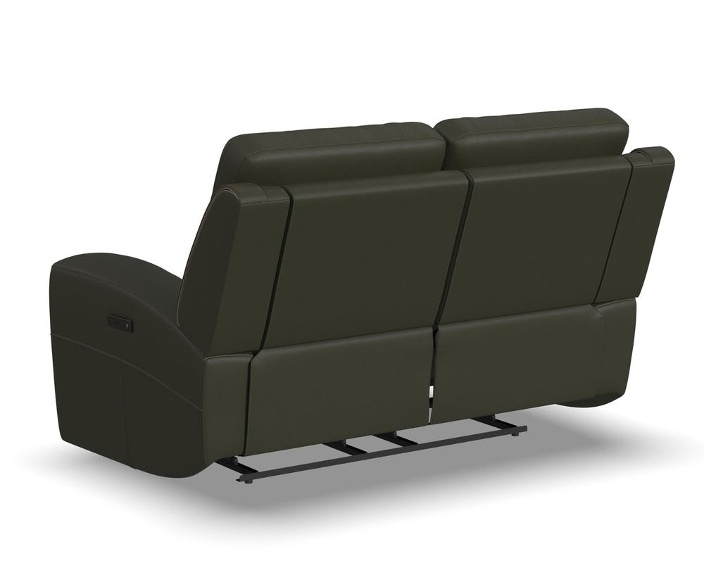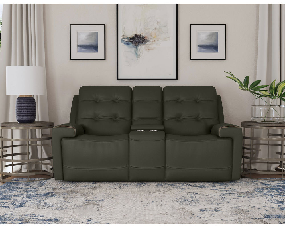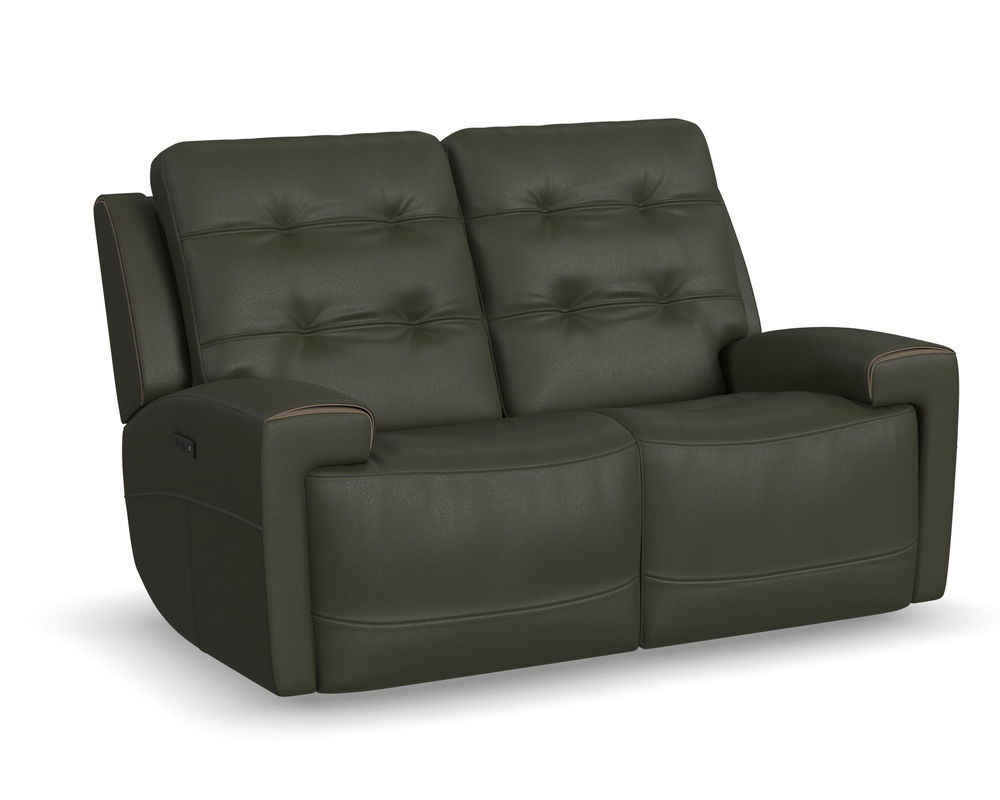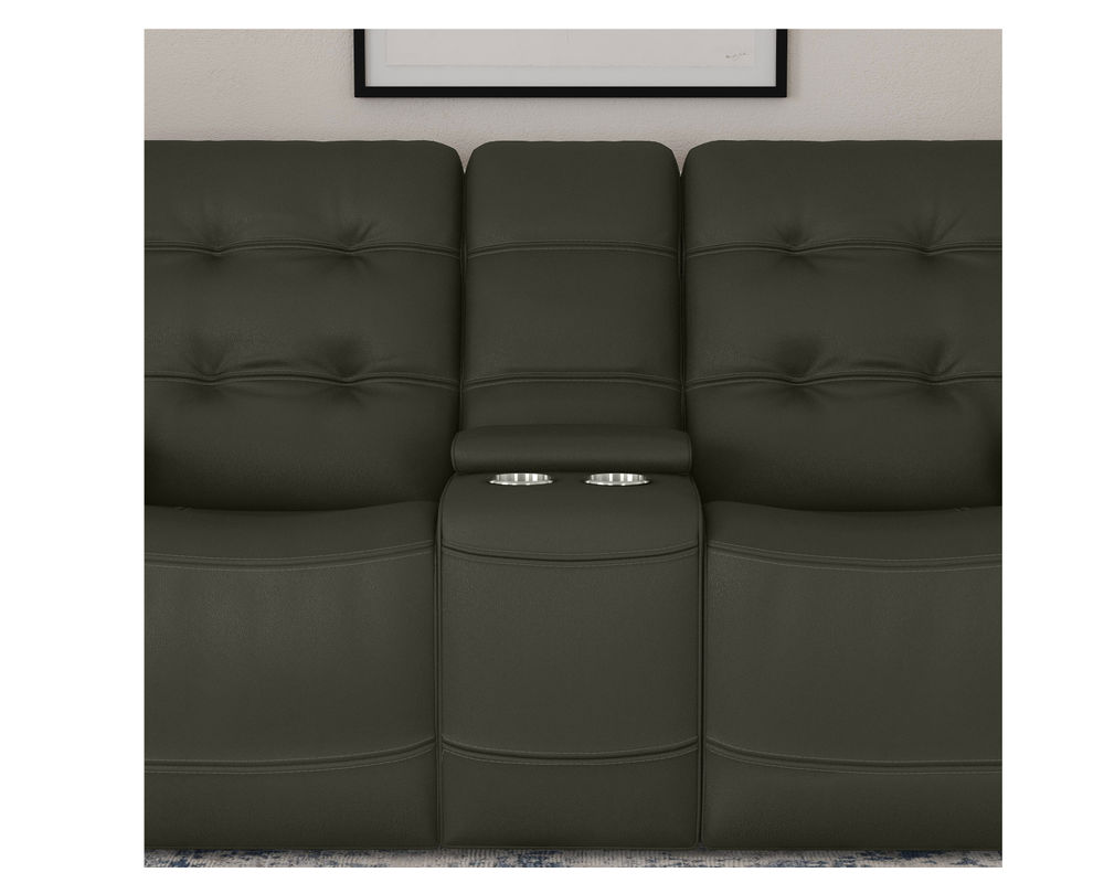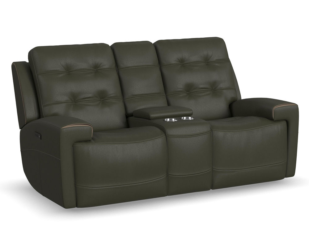 The Flexsteel Iris1781 Power Reclining Console Loveseat offers adjustable comfort and stylish details that make it stand out from the rest. This loveseat features dual power recline mechanisms, adjustable headrests, Zero Gravity technology, and waterfall chaise footrests for maximum comfort and relaxation. The high-quality upholstery consists of top-grain leather in two color choices for enhanced beauty and durability. The loveseat also includes eye-catching details such as top-stitched French seams, biscuit tufting on the back, and contrast color-wrapped seams along the thin pad arms and recessed wings. For added convenience, the loveseat also has USB ports for your mobile devices and a center storage console to keep drinks and remotes within easy reach. Make the Flexsteel Iris1781 Power Reclining Console Loveseat the perfect addition to your home and experience the difference that thoughtful details make.