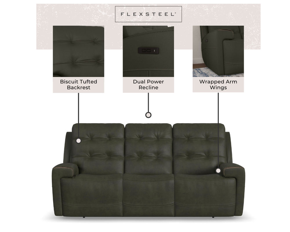 The Flexsteel Iris1781 Power Reclining Sofa is the perfect way to relax and enjoy your favorite movies and shows. With its adjustable comfort and convenient USB ports, you can enjoy a luxurious experience of relaxation and comfort. Make the Iris sofa the centerpiece of your living room and enjoy the ultimate in luxury and comfort.