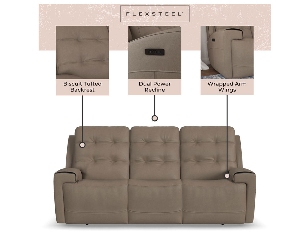 The Flexsteel Iris1781 Power Reclining Sofa is the perfect way to relax and enjoy your favorite movies and shows. With its adjustable comfort and convenient USB ports, you can enjoy a luxurious experience of relaxation and comfort. Make the Iris sofa the centerpiece of your living room and enjoy the ultimate in luxury and comfort.
