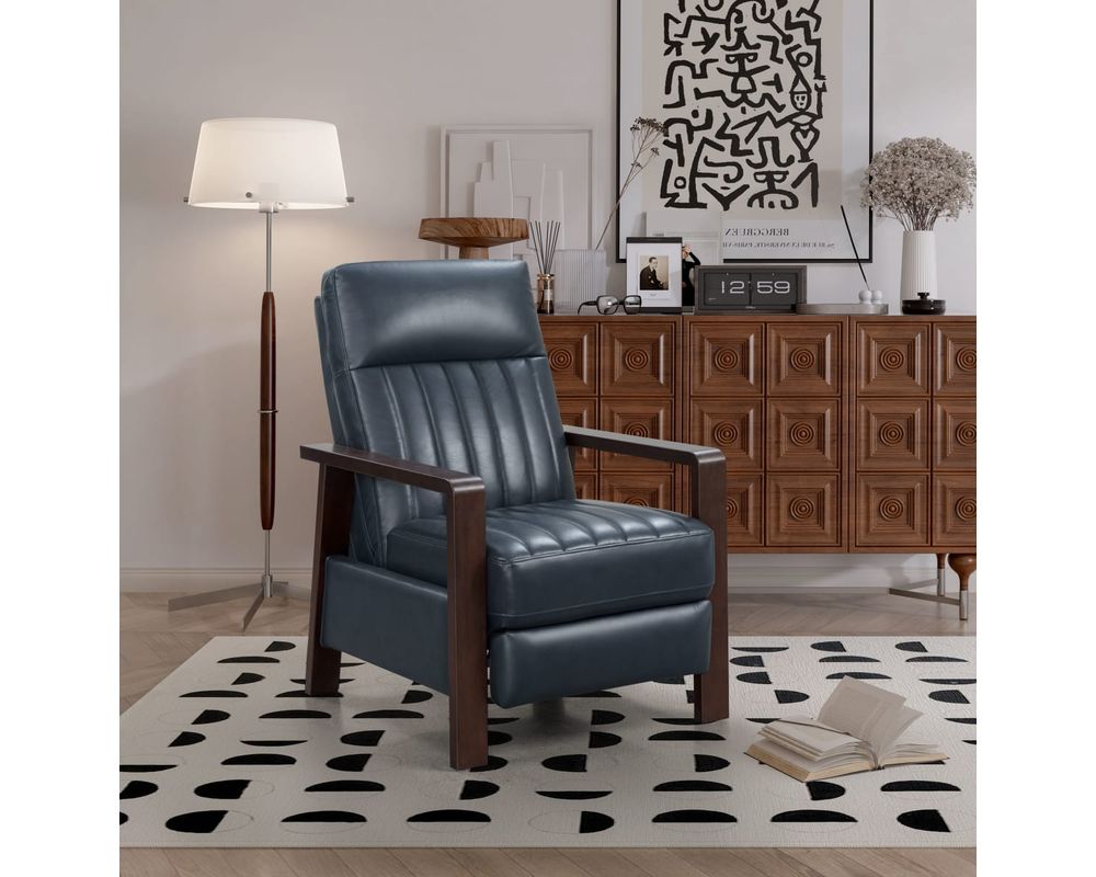 Not only is the Ivy Push-Back Recliner a comfortable and stylish choice, but it also offers a durable design. The wood trim base and arms add an elegant touch to the overall look of the recliner. Plus, it's crafted with 100% top-quality leather, ensuring it will remain a reliable and stylish part of your home for years to come.