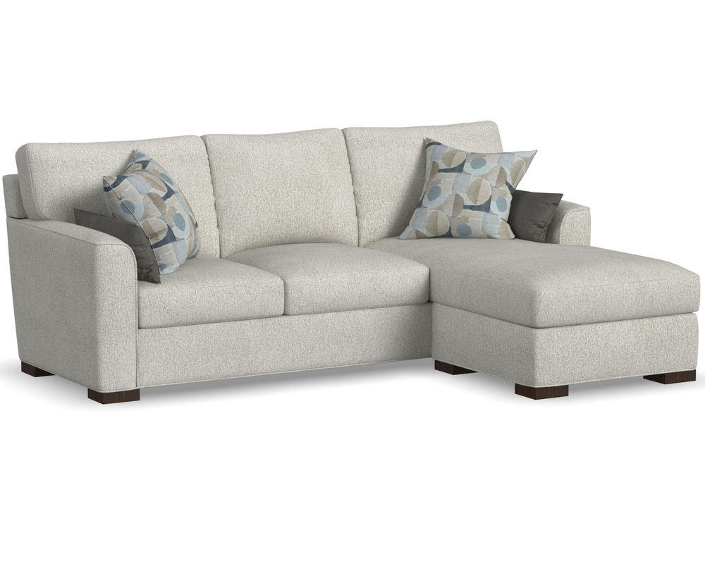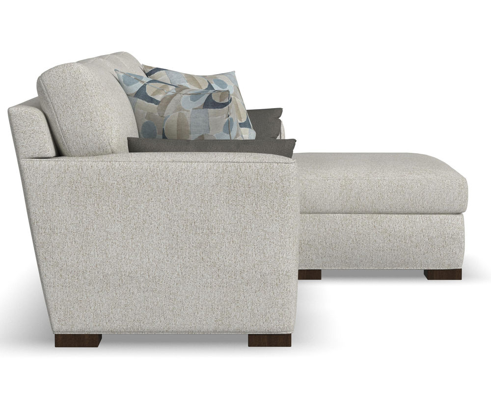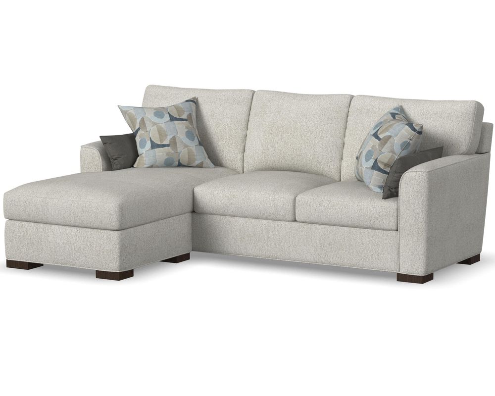 But what truly sets this sofa chaise apart is its unparalleled comfort and durability. The core of the sofa is built with Flexsteel's renowned Blue Steel Springâ„¢ system, which ensures long-lasting support and comfort. This innovative system also prevents sagging, ensuring that your sofa will maintain its shape and comfort for years to come.