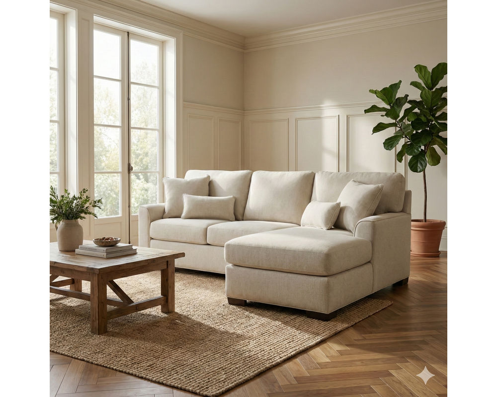 • Sofa includes a reversible chaise base and cushion that can be used on the left or right side