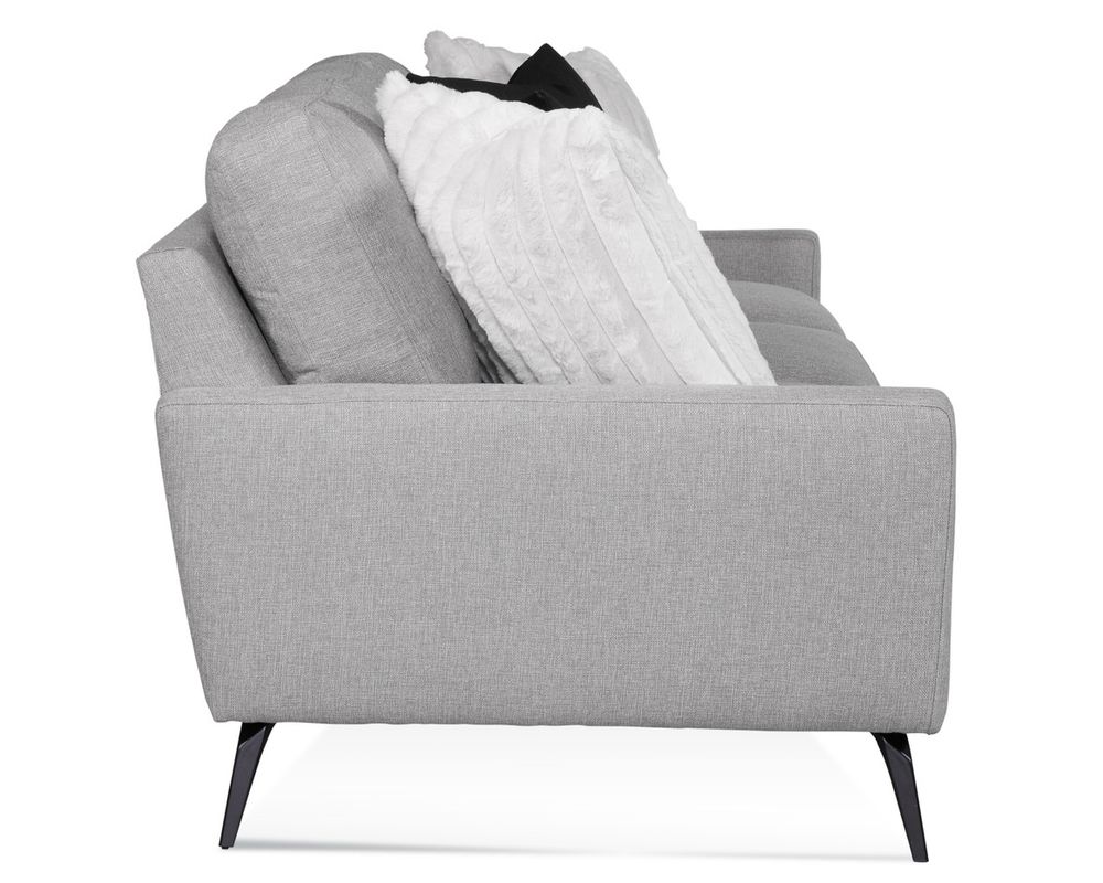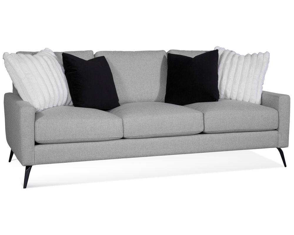 The Javon Sofa embodies sleek modern styling with a tailored silhouette, slim track arms, and your choice of black or nickel metal legs for a contemporary edge. With reversible cushions, premium Springdown seating, and four luxurious Blendown pillows included, this 83" sofa is crafted for both long-lasting durability and superior comfort. Proudly made in the USA, the Javon Sofa is where modern design meets timeless quality.