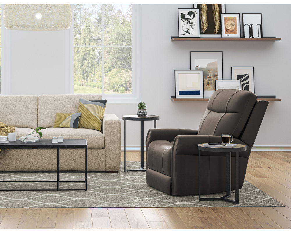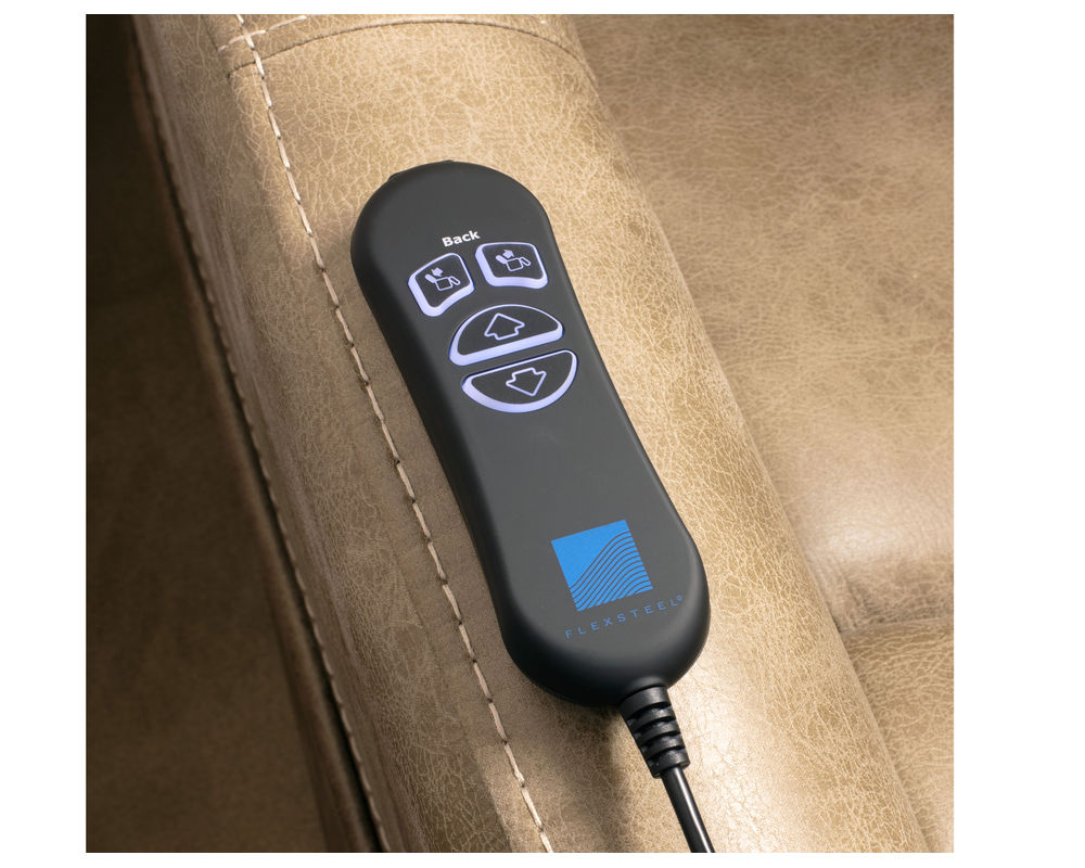• A four-button wired power hand control on the right-hand side of the recliner allows for controlled transitioning between the recline and lift positions. A single USB port is included on the top of the hand control.