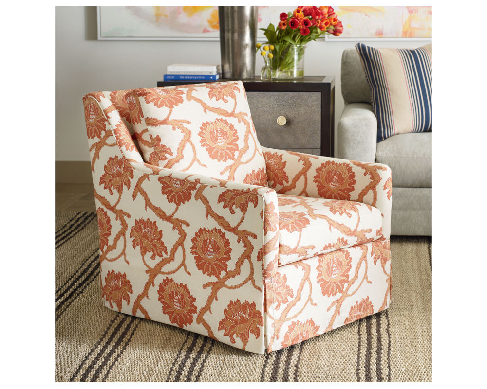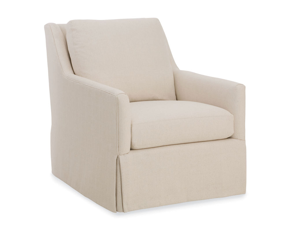 Introducing the stylish and comfortable Jennifer Chair from CR Laine, a must-have addition to any living space. This chair boasts a casual yet modern design, with its flared arm and draped skirt, adding a touch of sophistication to your home decor.