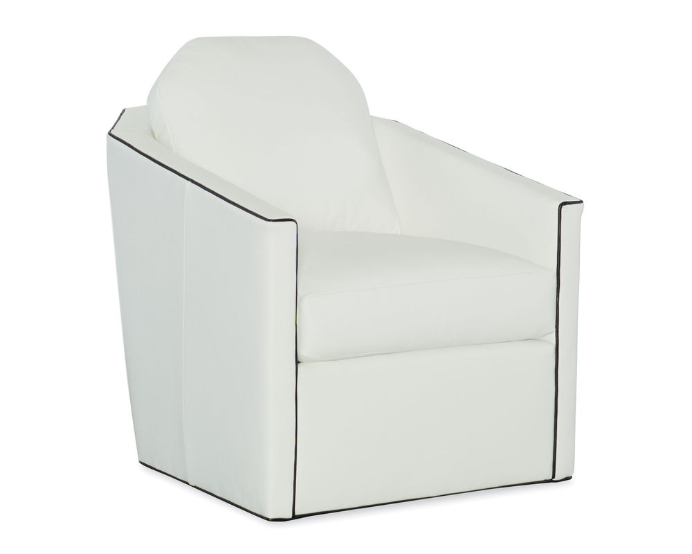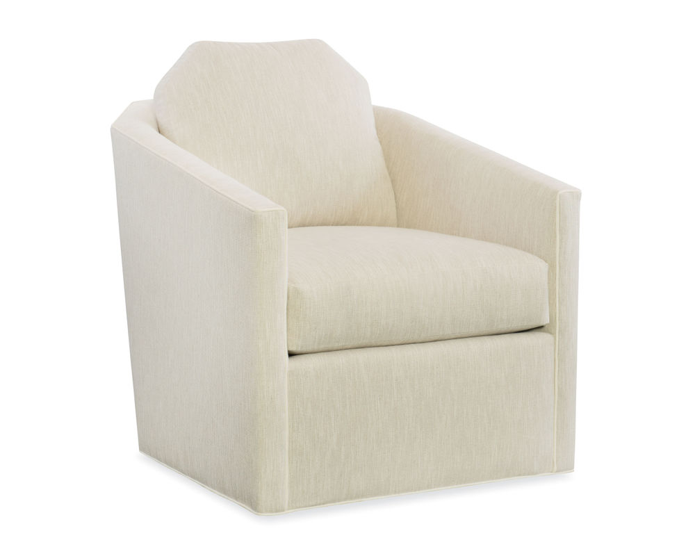 The Jewel Swivel Chair from CR Laine is the perfect addition to any home. This chair boasts a unique and eye-catching design with a back cushion shaped like a jewel, adding a touch of elegance and sophistication to any room. The sloping track arms add to the overall sleek and modern look of the chair while also providing comfort and support.