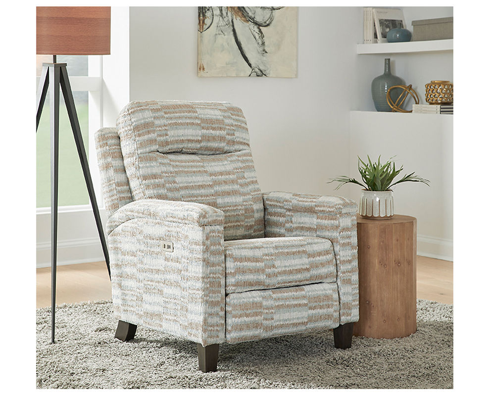 The Jitterbug Hi Leg Recliner is the perfect choice for those who want the best of both worlds – a stylish chair during the day and a power recliner during the night. This recliner has a high leg style that brings a touch of transitional styling to any room, with upholstered cap arms and boxed back and seat cushions. With the power headrest feature, you can easily adjust the headrest and find the most comfortable position for you. The Jitterbug Hi Leg Recliner is the perfect choice for those looking for a high leg reclining chair that offers both comfort and style.