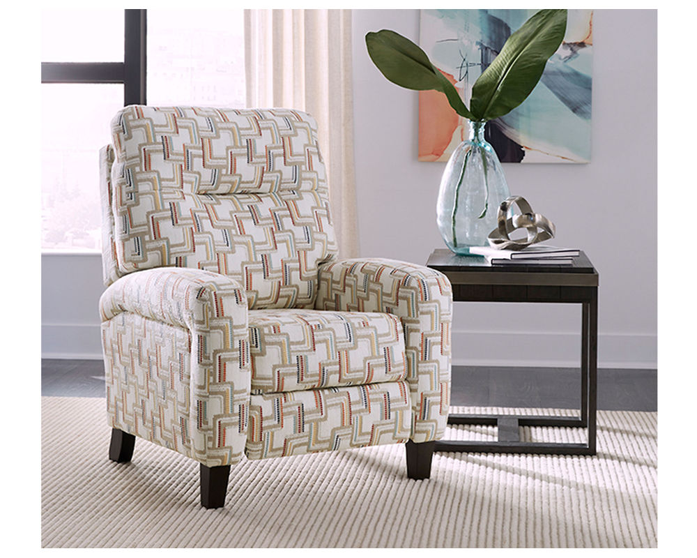 The Jive Hi Leg Recliner is the perfect combination of classical and contemporary design elements, making it suitable for any home setting. Its track arms are highlighted by decorative stitching on the French seams, making it stand out from the crowd. The panels on the outside of the recliner provide unexpected definition and dimension, while the classic block leg gives it a timeless look. For added comfort, the Jive Hi Leg Recliner is now available with Power Headrest, allowing you to adjust the support of your head and neck for maximum comfort. Whether you’re looking for a classic or contemporary design, the Jive Hi Leg Recliner is sure to bring a touch of sophistication to any room.
