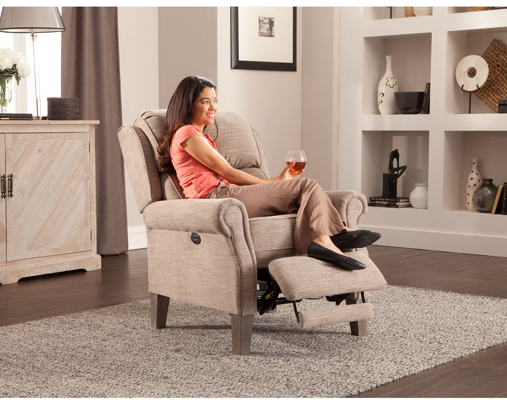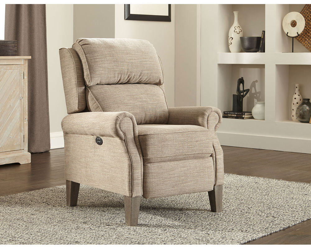 The Joanna 0L20 Recliner is the perfect combination of luxurious style and ultimate comfort. This high-leg recliner is built with cutting-edge technology from Leggett & Platt, with a double bustle back, rounded arms, and a tall seat height to create a piece that will be a stunning addition to any home. The cushions feature encased coil springs for long-lasting comfort, and beautiful cording accents create an air of sophistication. The Joanna is available in a wide variety of fabrics, a few genuine leather choices, and three different leg finishes to make sure you can find the perfect fit for your home. You can also upgrade your relaxation with the Power Touch buttons that allow you to recline to an infinite number of positions and with the Power Tilt Headrest. With the Joanna 0L20 Recliner, you can have the perfect combination of style and comfort.