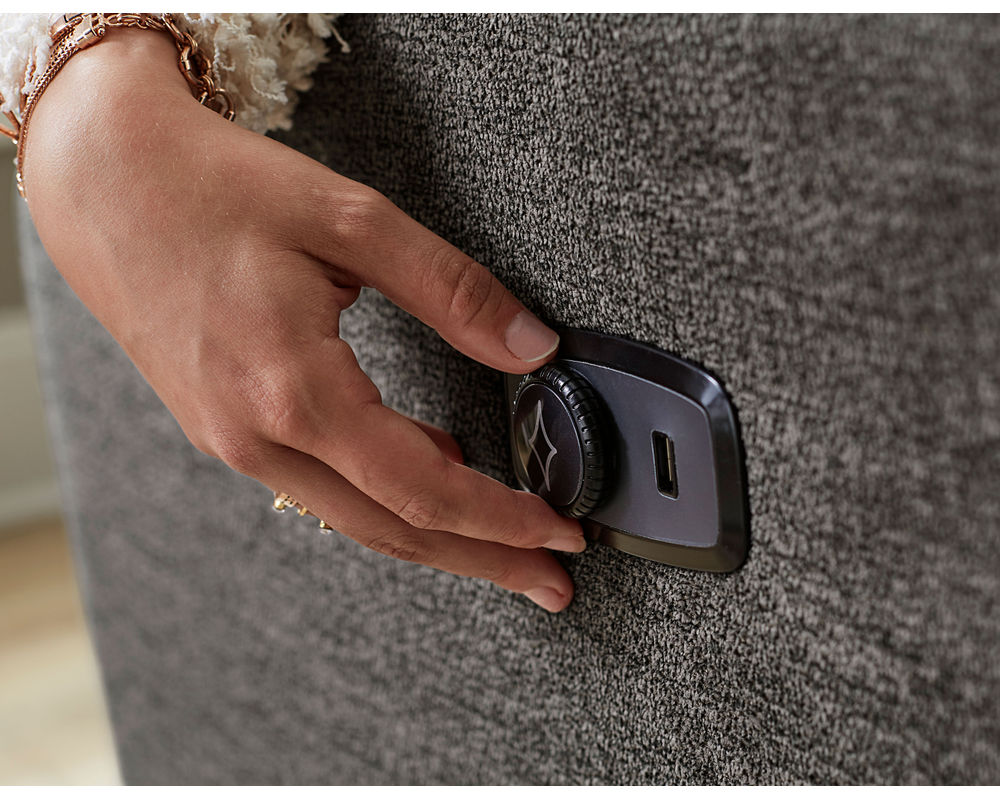 Exclusive to Best Home Furnishings, the easy-to-use Comfort Dial brings convenience to our Power Tilt Headrest models. Push the button to toggle between recline and headrest adjustments, then simply twist the Comfort Dial to tune your recliner to your perfect position. Oh, did we mention it comes fully loaded with a USB charger too? Available with power headrest reclining options only.
