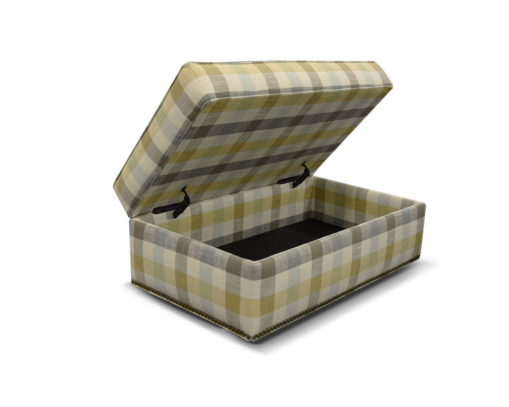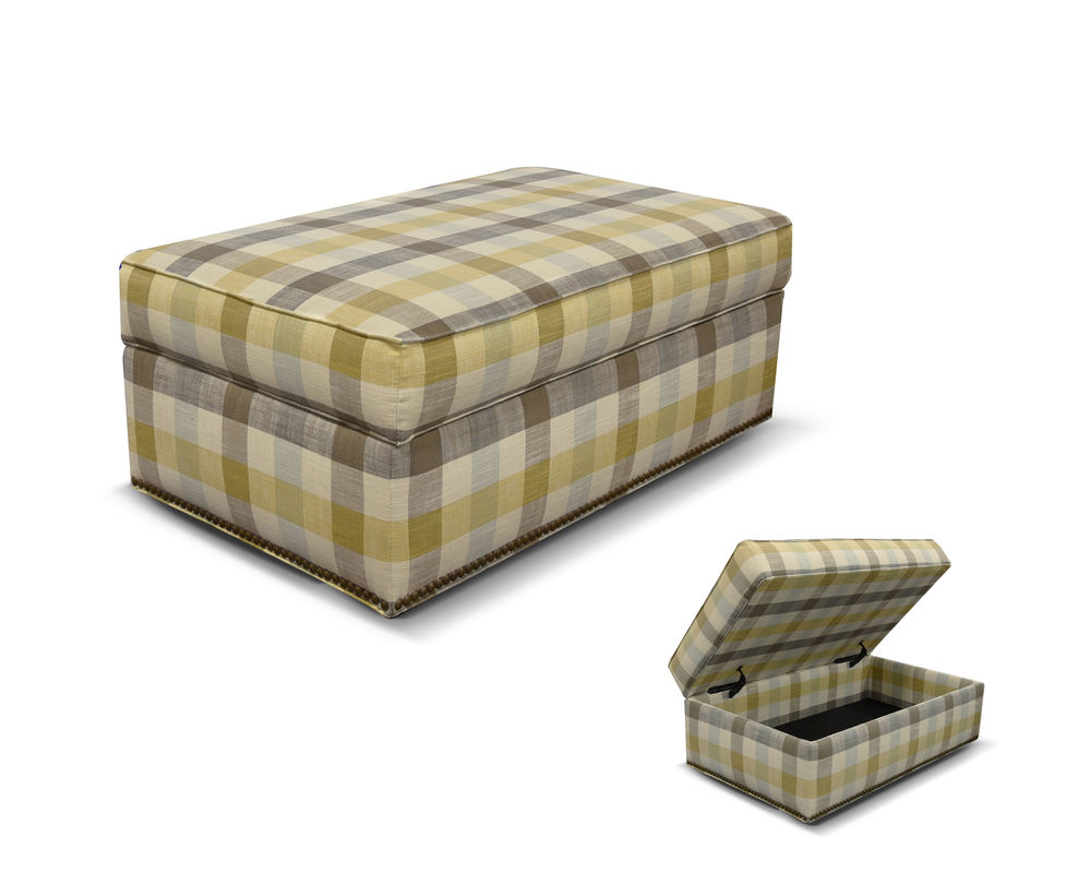 The June Storage Ottoman from June Collection is a classic piece of furniture that adds elegance and style to any room. This beautifully designed ottoman features a generous rolled arm, T-cushion seat, and an optional antique brass nailhead trim that adds a touch of sophistication. It measures 40" wide by 24" deep by 18" tall, making it a perfect size for any room. The storage ottoman can be used as an extra seat or as a place to store books, blankets, and other items. It is the perfect addition to any living room or bedroom and will add a touch of sophistication to any space. With its classic and inviting design, this storage ottoman is sure to be a conversation starter in any home.