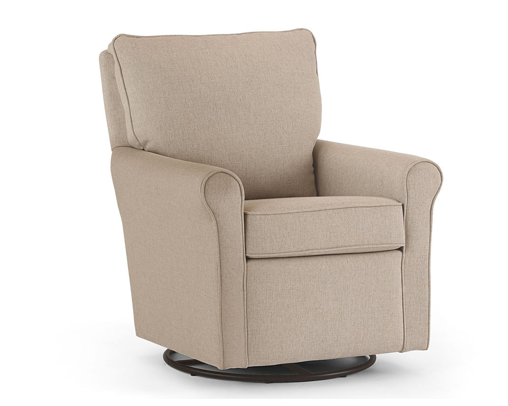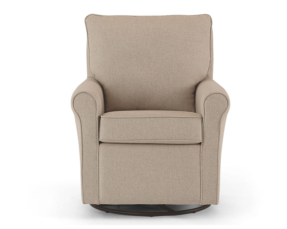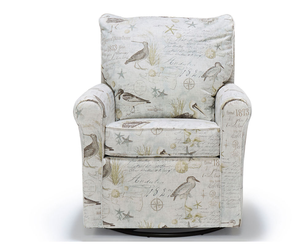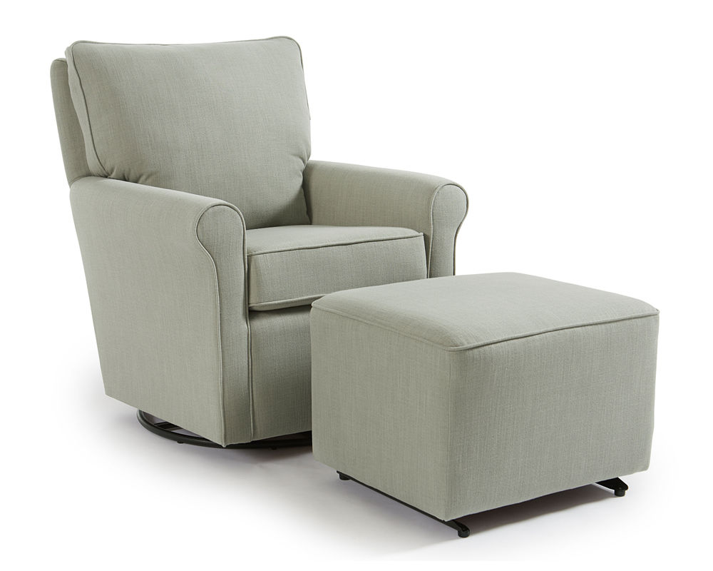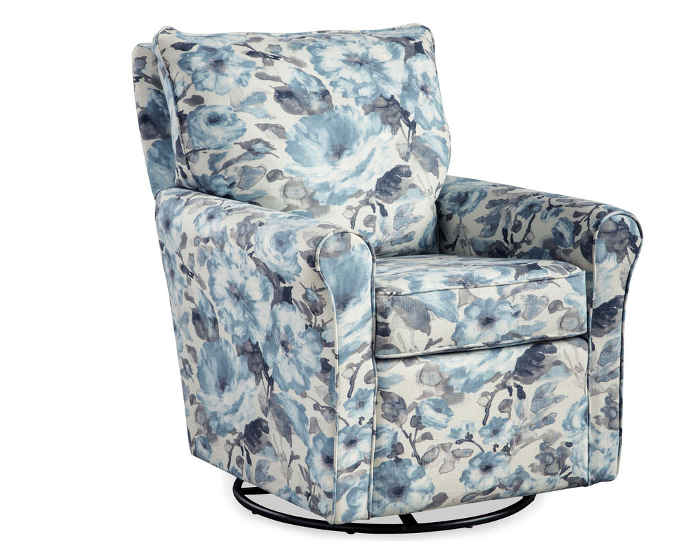 The Kacey 5027 Swivel Glider is the perfect addition to any living room or bedroom. Made in the USA with quality craftsmanship and kiln-dried hardwood frame parts, this chair is built to last. The reversible seat cushion is both sturdy and comfortable, and the all-steel swivel glide mechanism allows for a full 360-turn and whisper-smooth gliding motion. Choose from hundreds of stylish fabric options to make this chair a perfect match for any decor. The perfect companion to the Kacey 5027 Swivel Glider is the coordinating ottoman, available for purchase separately. So, relax and enjoy the comfort and style of the Kacey 5027 Swivel Glider.