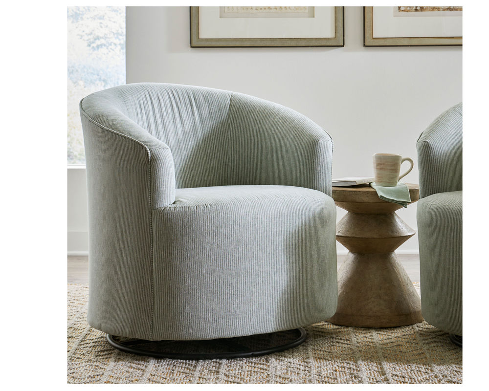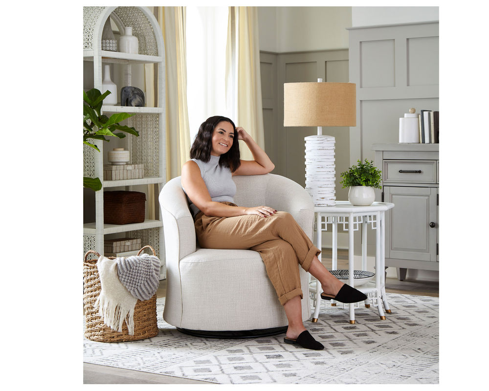 This Kahlari 2287 Swivel Glider is the perfect choice for those looking for a stylish yet simple seating option. The tall back and handcrafted cording accents create a stylish look that will fit in with any decor. The smooth, tight seat and extra tall deck provide comfortable seating, while the whisper smooth glide and 360-degree swivel action provide versatility and function. With over 100 fabric options available, you can make it your own. Expertly crafted in the USA, this swivel glider is sure to be an excellent addition to your home.