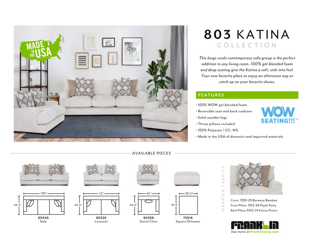 Introduce elegance and comfort into your living room or family room with the Katina 803 Sofa. This stunning piece from the Katina collection is designed to transform any space into a serene oasis.