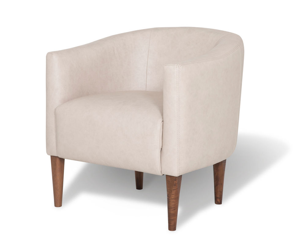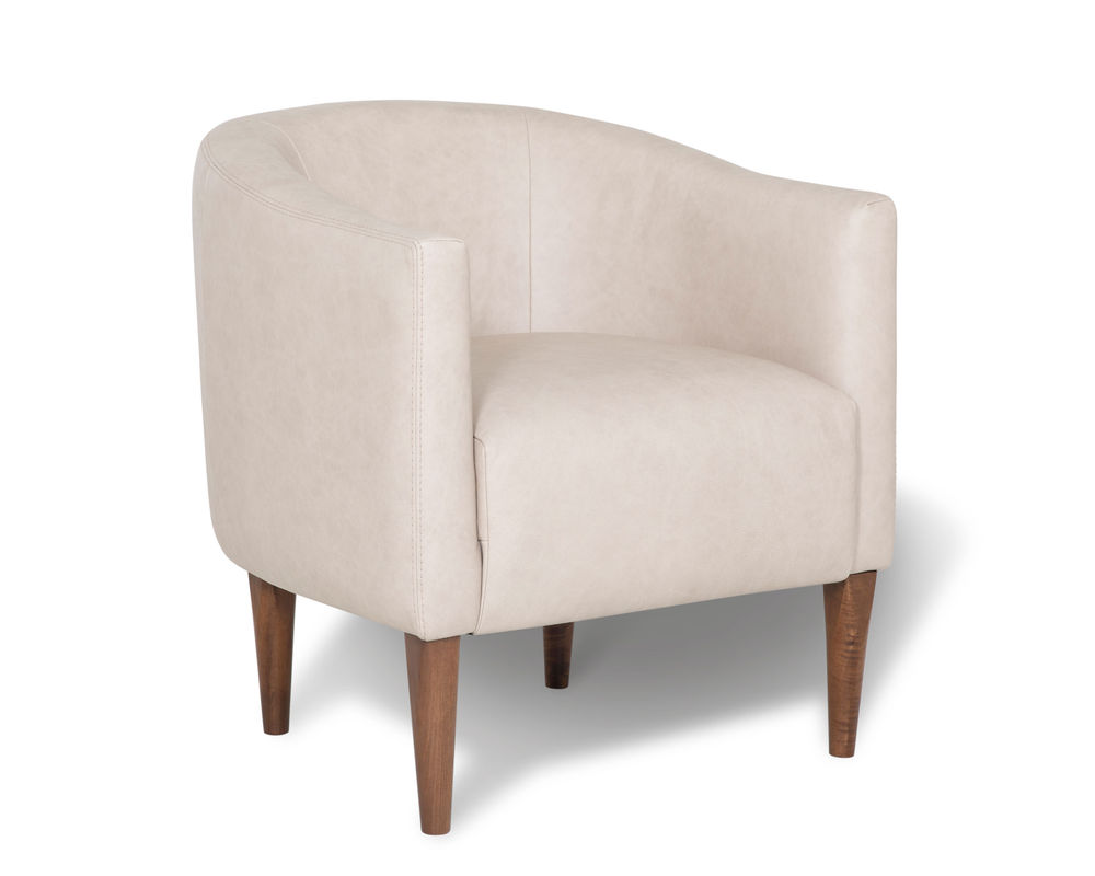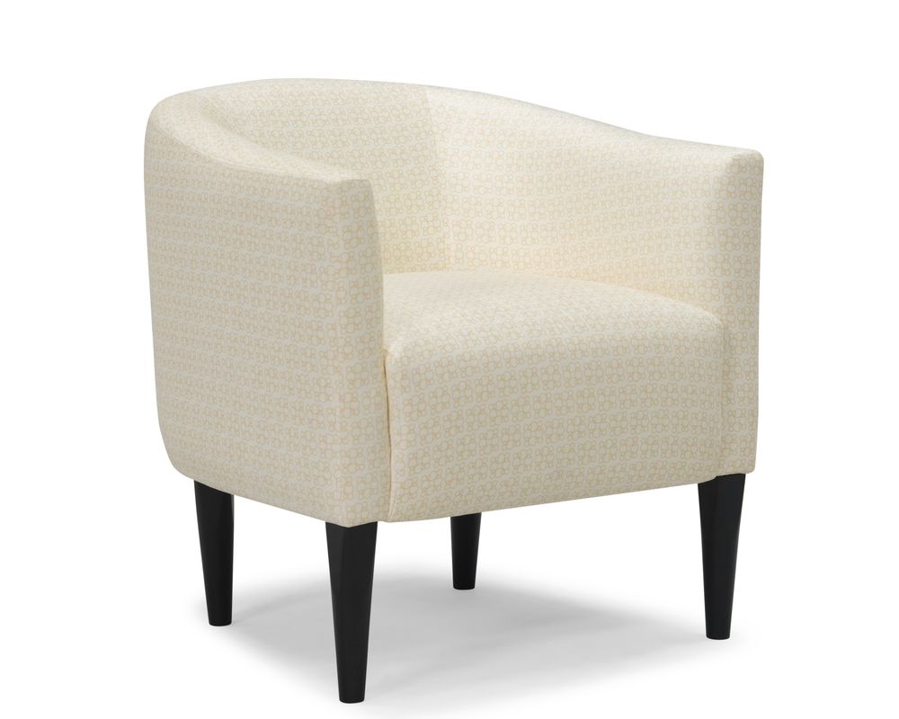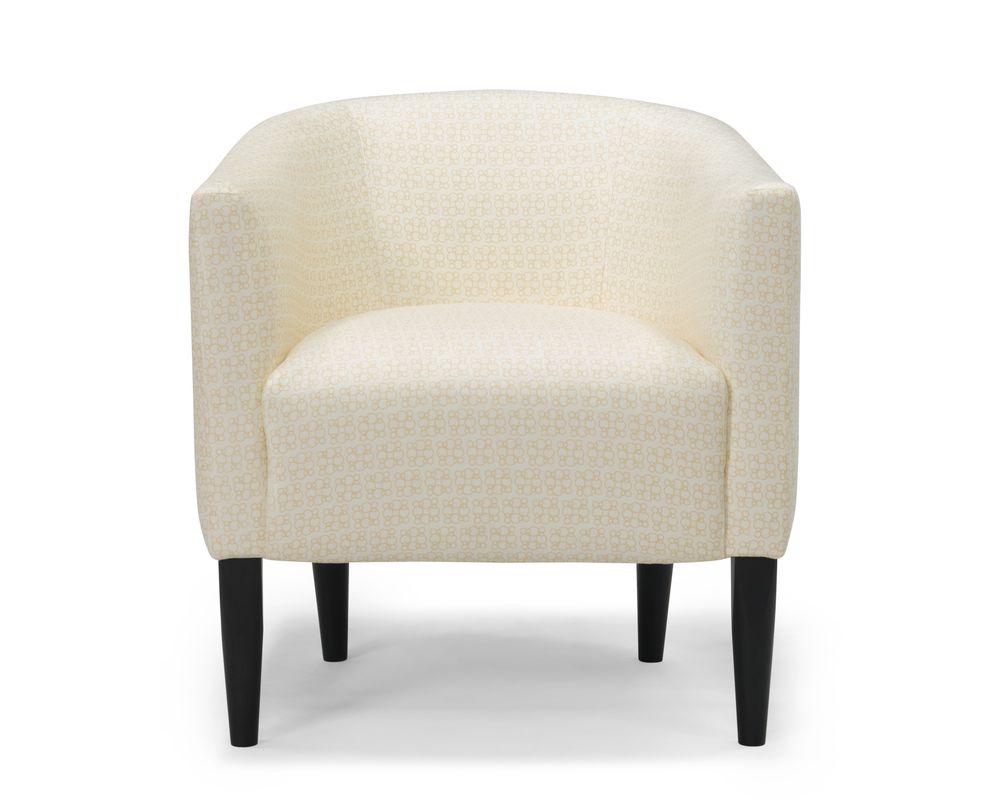 Introducing the Kendall 77073 Chair, a stunning piece of furniture that seamlessly blends style and comfort. This occasional chair features a delicate feminine design with subtle curves and a cozy barrel back. Its tapered high legs in a cognac finish add a touch of elegance and create a graceful appearance.