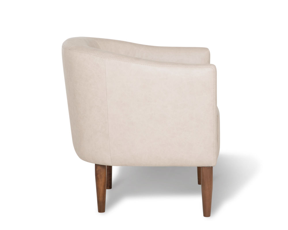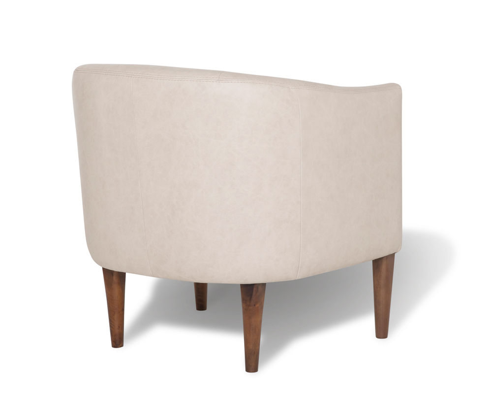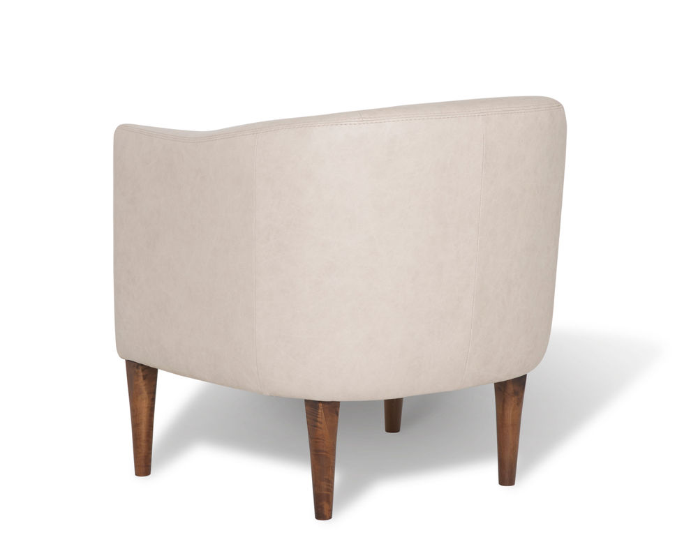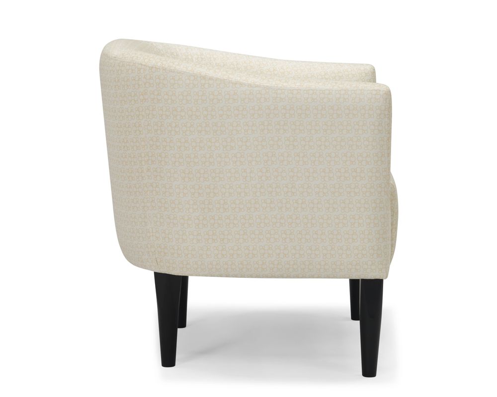 Introducing the Kendall 77073 Chair, a stunning piece of furniture that seamlessly blends style and comfort. This occasional chair features a delicate feminine design with subtle curves and a cozy barrel back. Its tapered high legs in a cognac finish add a touch of elegance and create a graceful appearance.
