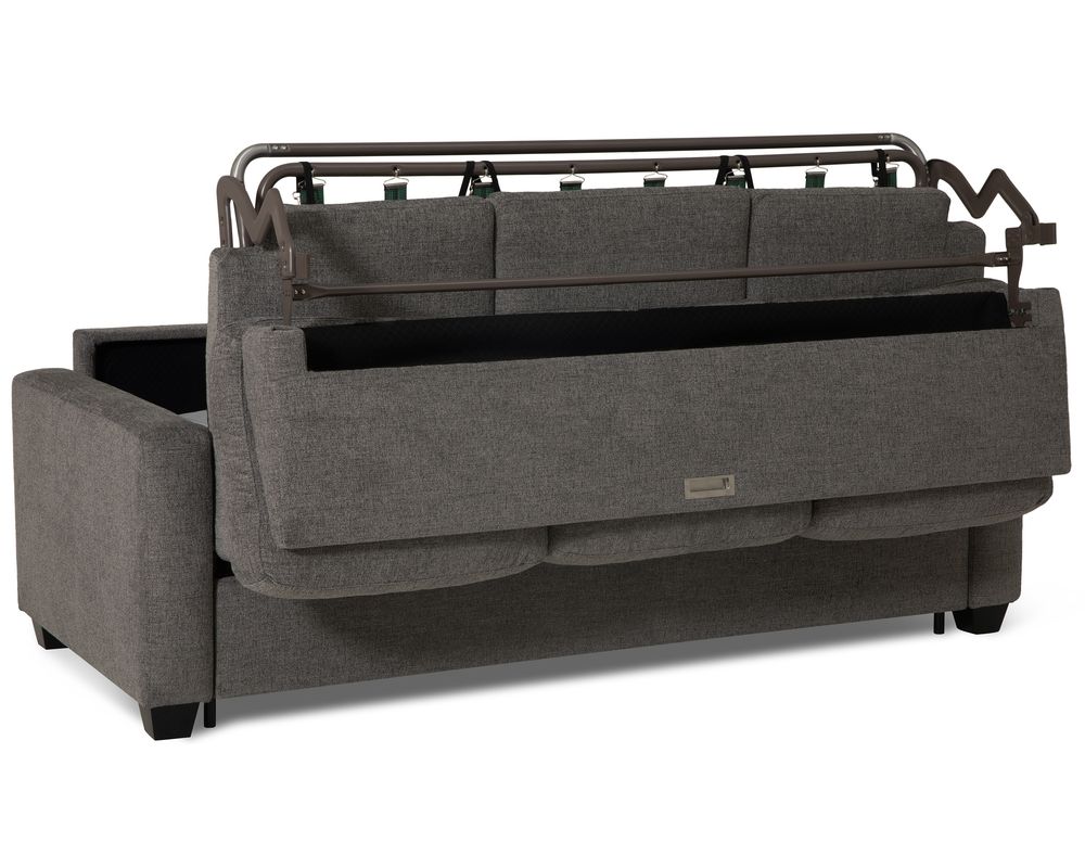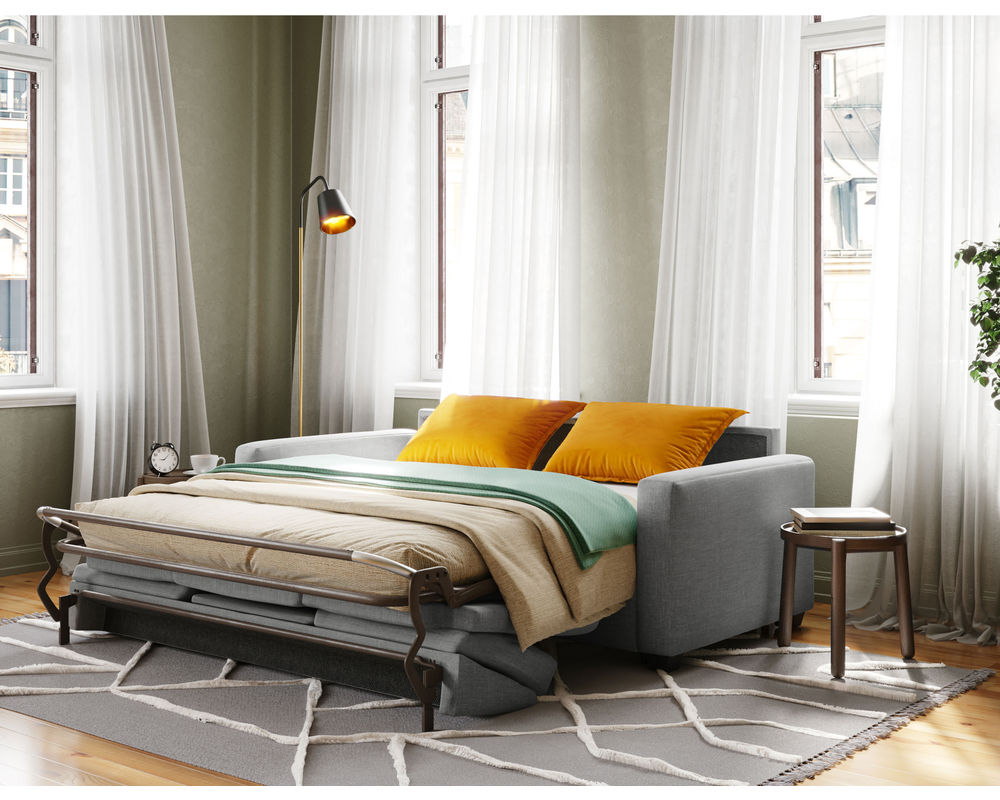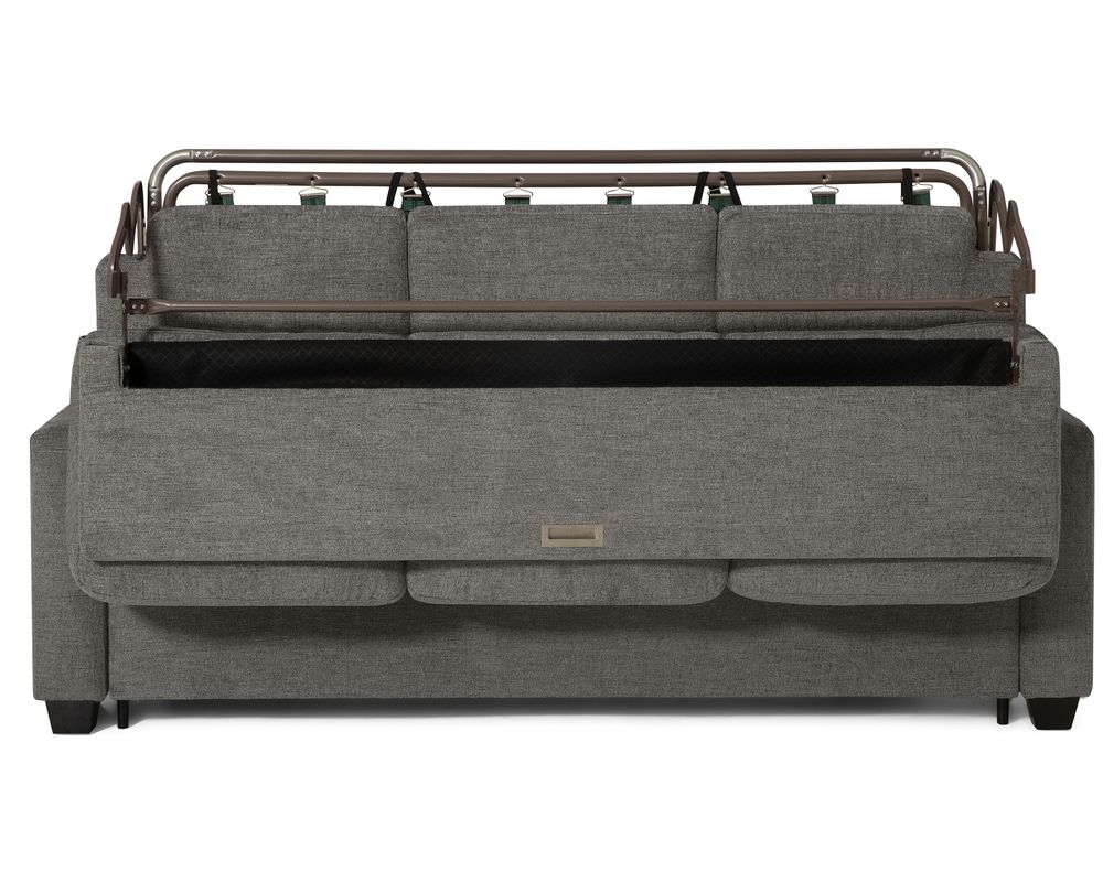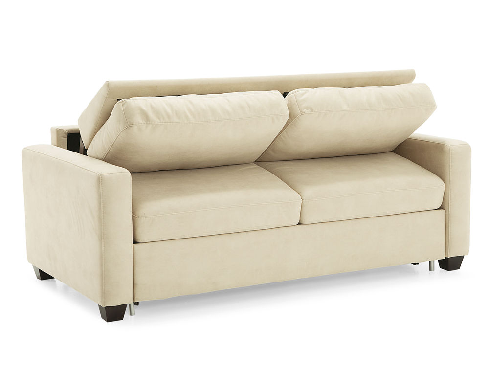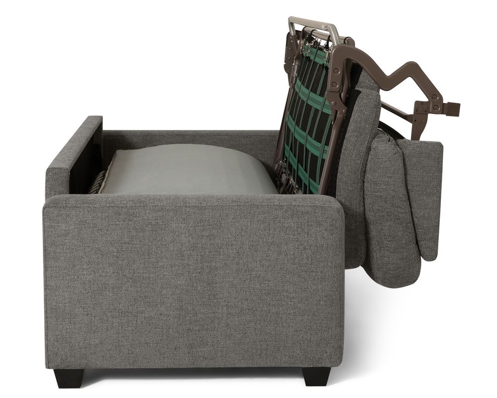 The attached seat and back cushions remain attached during opening and closing, eliminating the need to be stored when used for sleeping. Transition from sofa to bed seamlessly with the utilization of the steel European mechanism. Designed to be used in any living room or guest room, the Kildonan sofa bed is available in twin, full, or queen size.