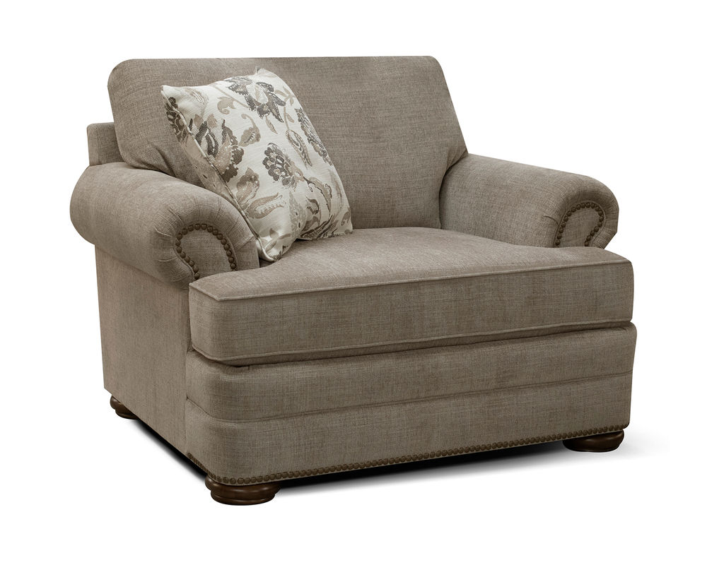 Introducing the Knox 6M0004 Big Chair, a stylish and comfortable addition to any living space. Combining classic and transitional styling, this chair stands out and makes a statement in any room. Perfect for relaxing, the Knox 6M0004 Big Chair features a roll arm, bun foot, and a T-cushion for maximum comfort. To complete the look, this chair also features optional antique brass nailhead trim on the arms and base. Available as a sofa, loveseat, chair, and ottoman, the Knox 6M0004 Big Chair is the perfect way to add style and comfort to any home.