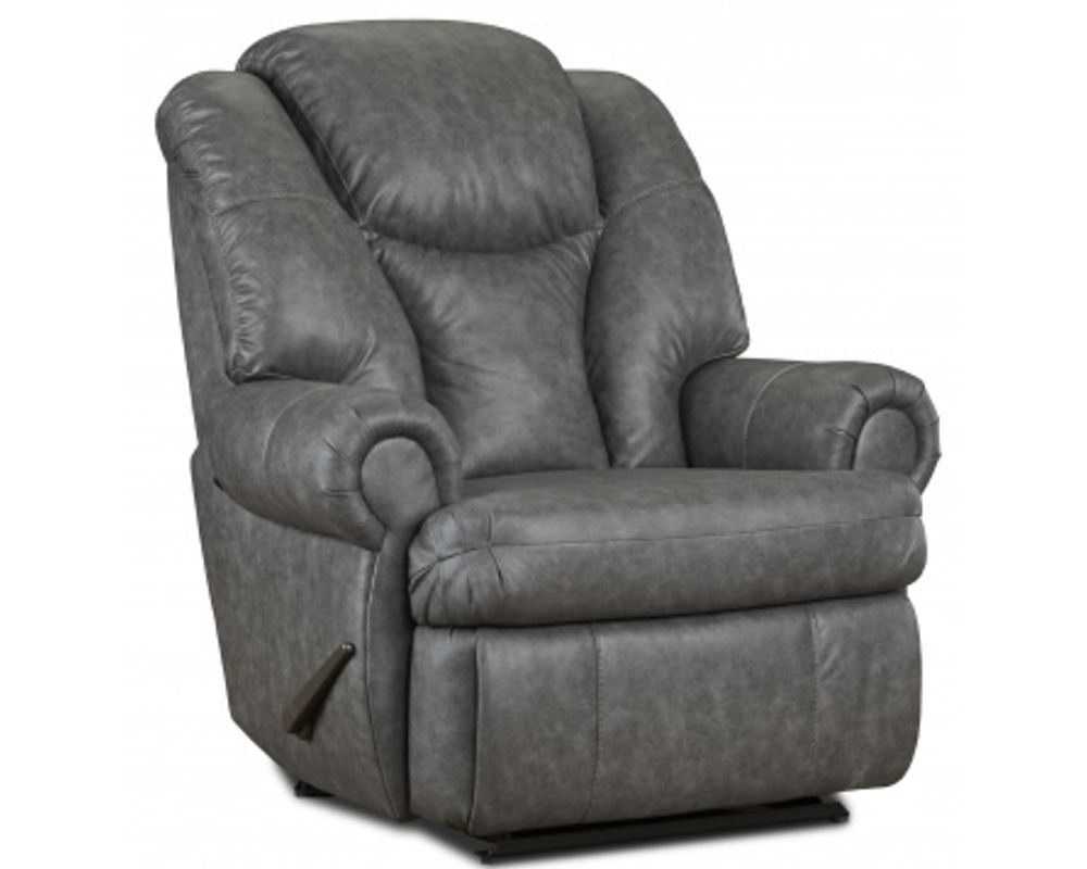 A: The Knox King Comfort Big Man’s Recliner shown on our site in the in‑stock options is upholstered in a durable polyester fabric, not leather.