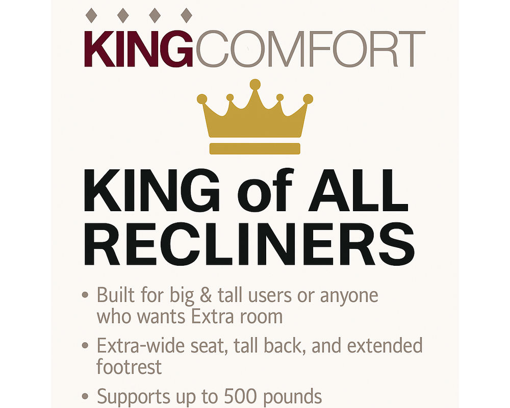 The Knox Recliner from the King Comfort Collection is designed specifically for big & tall users—or anyone who just wants more room to relax. With an impressive 500 lb weight capacity and a 79" extended layout, this chair is truly built to support and stretch out in total comfort.