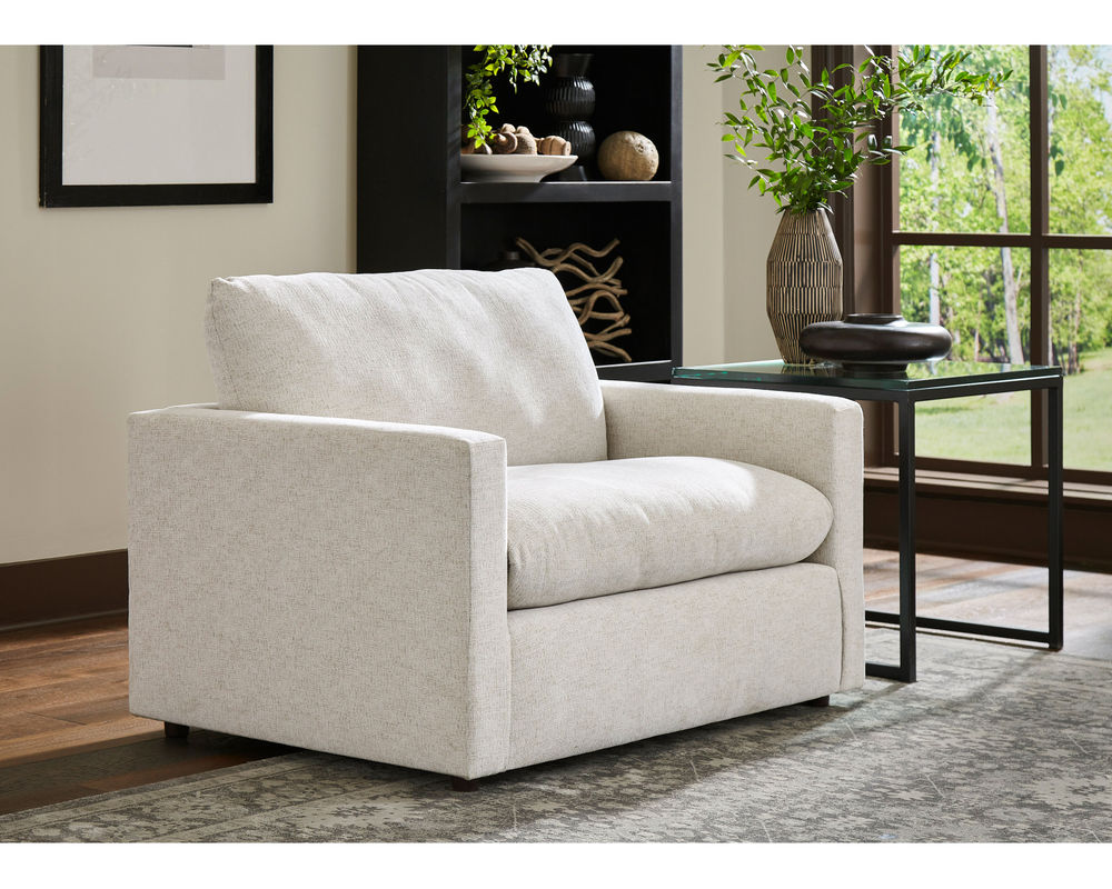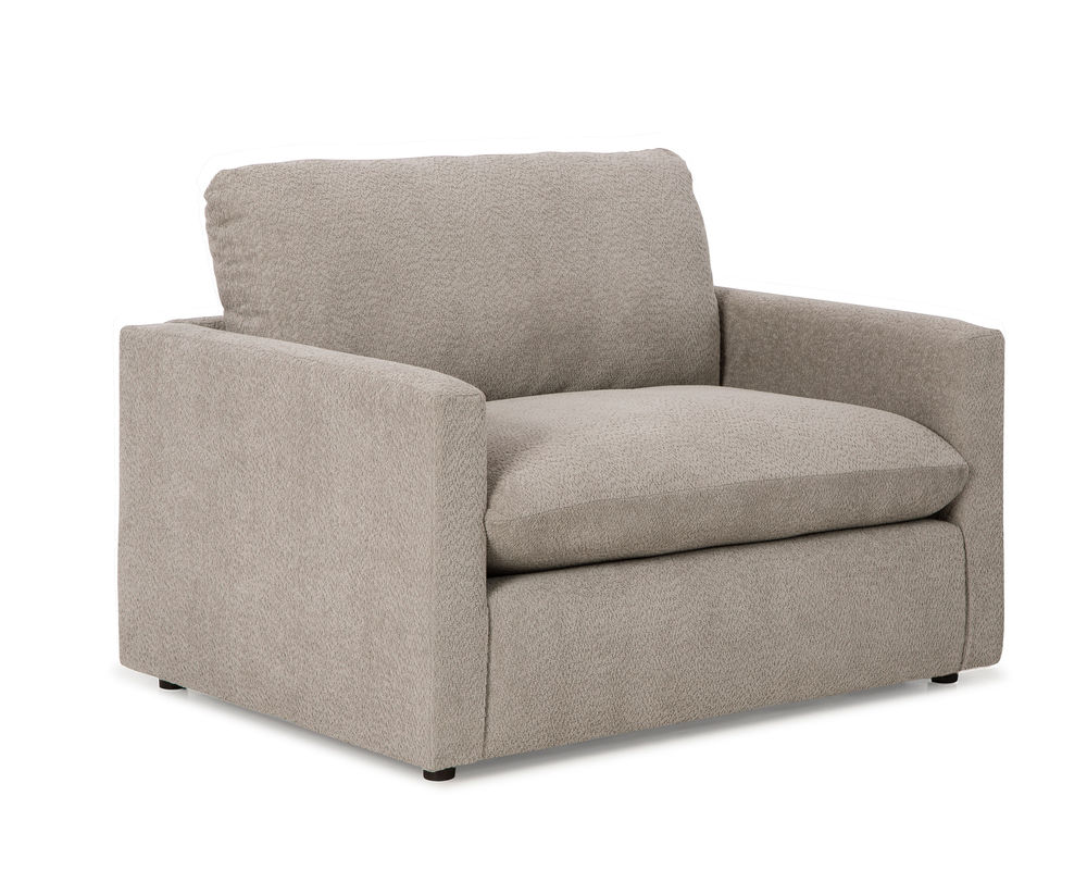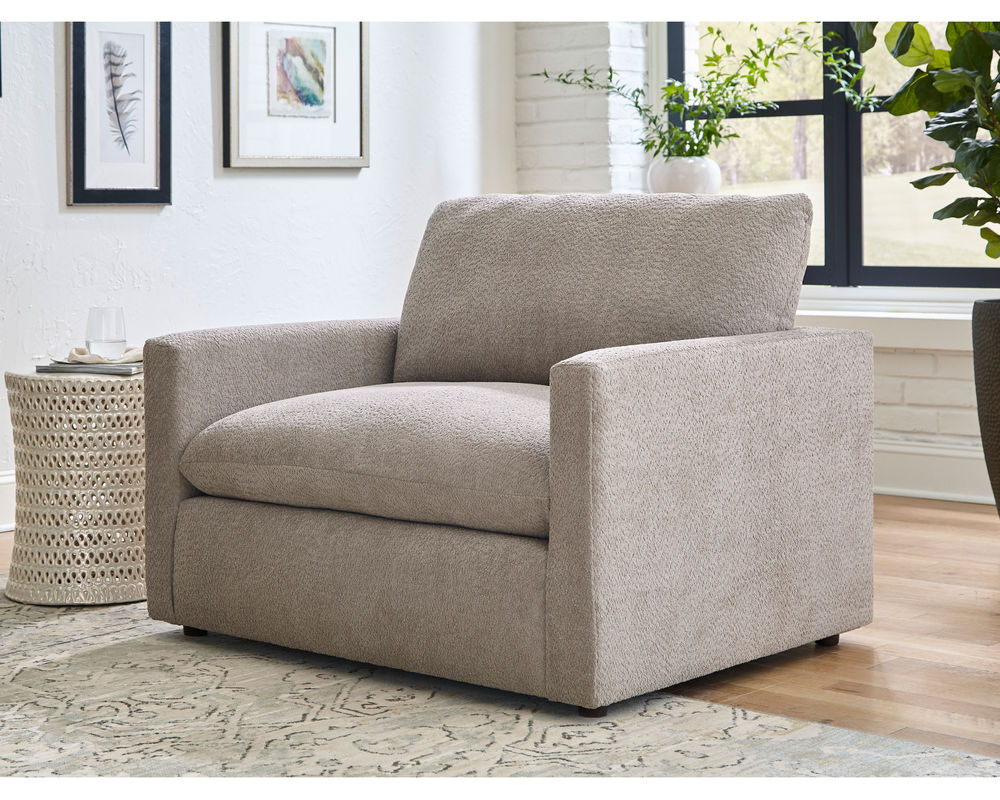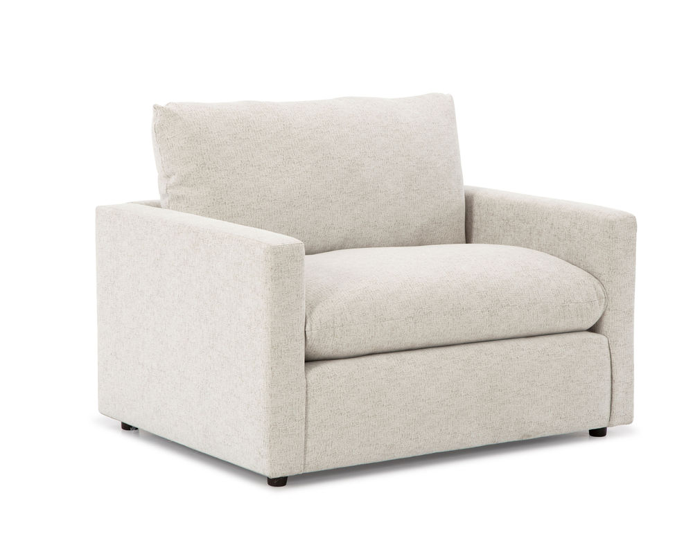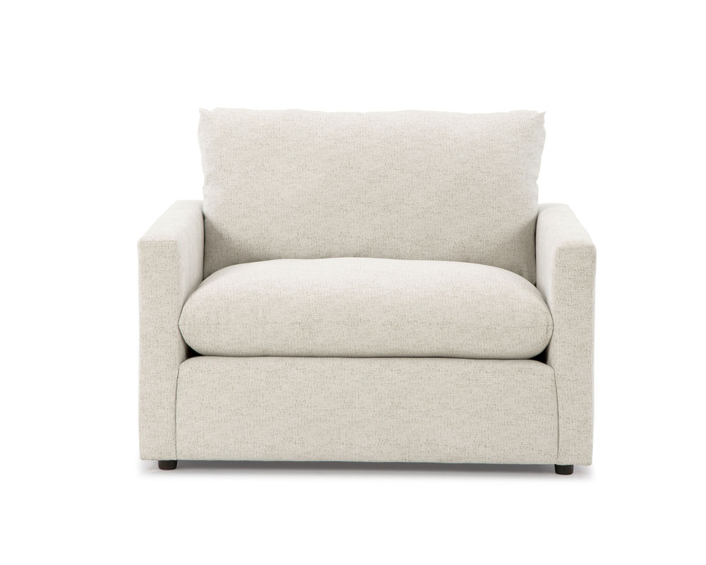 The Knumelli C15 Chair is designed to provide maximum comfort and relaxation. With its 36" wide seat, it is perfect for cuddling up with a good book or just relaxing. Its cloud seat cushion is a hybrid pillow-cushion design, featuring a supportive foam core that is generously wrapped with premium pillow fibers. It is also reversible and zippered, allowing for easy adjustment and personalization of your pillow fibers. The back of the chair is heavily stuffed with premium cushioning fibers, providing a luxurious and comfortable seating experience. The slimline and lightly padded arms lend to a minimalist design, making this chair the perfect addition to any room. And with over 100 fabric options, you can make the Knumelli C15 Chair your own. Built and upholstered in S. Indiana with fine, experienced craftsmen, this chair is sure to provide years of comfort and relaxation.