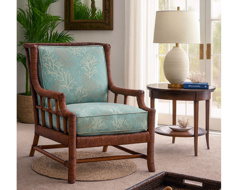 The Lafayette Accent Chair blends traditional rattan artistry with refined styling for a timeless coastal-inspired look. Its exposed wood frame and tailored silhouette create a sophisticated accent piece, while the Comfort Plus cushion provides extra support, durability, and consistent comfort. Handcrafted in the USA and available in an array of customizable fabrics and finishes, the Lafayette Chair brings enduring elegance and comfort to any living space.