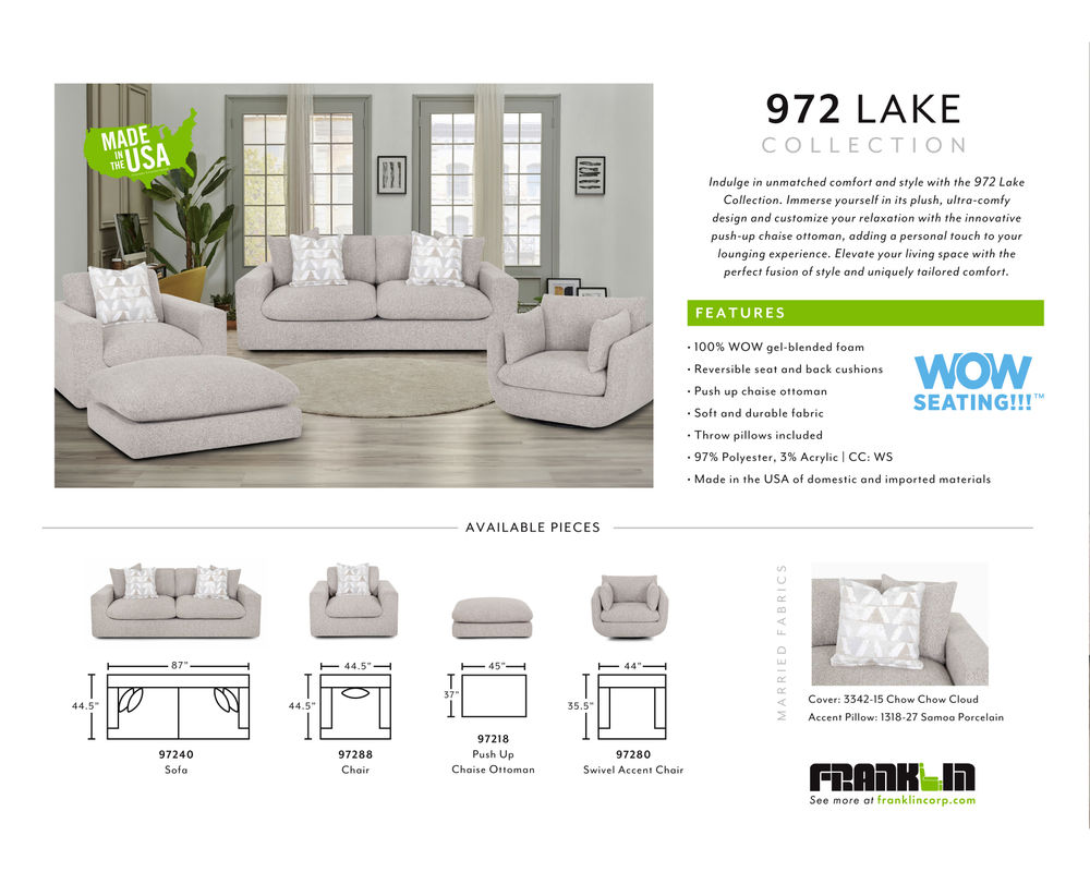 If you value supporting local businesses, you'll be happy to know that the Lake 972 Sofa is proudly made in the USA. So, you are investing in a high-quality and comfortable piece of furniture while also supporting the economy.