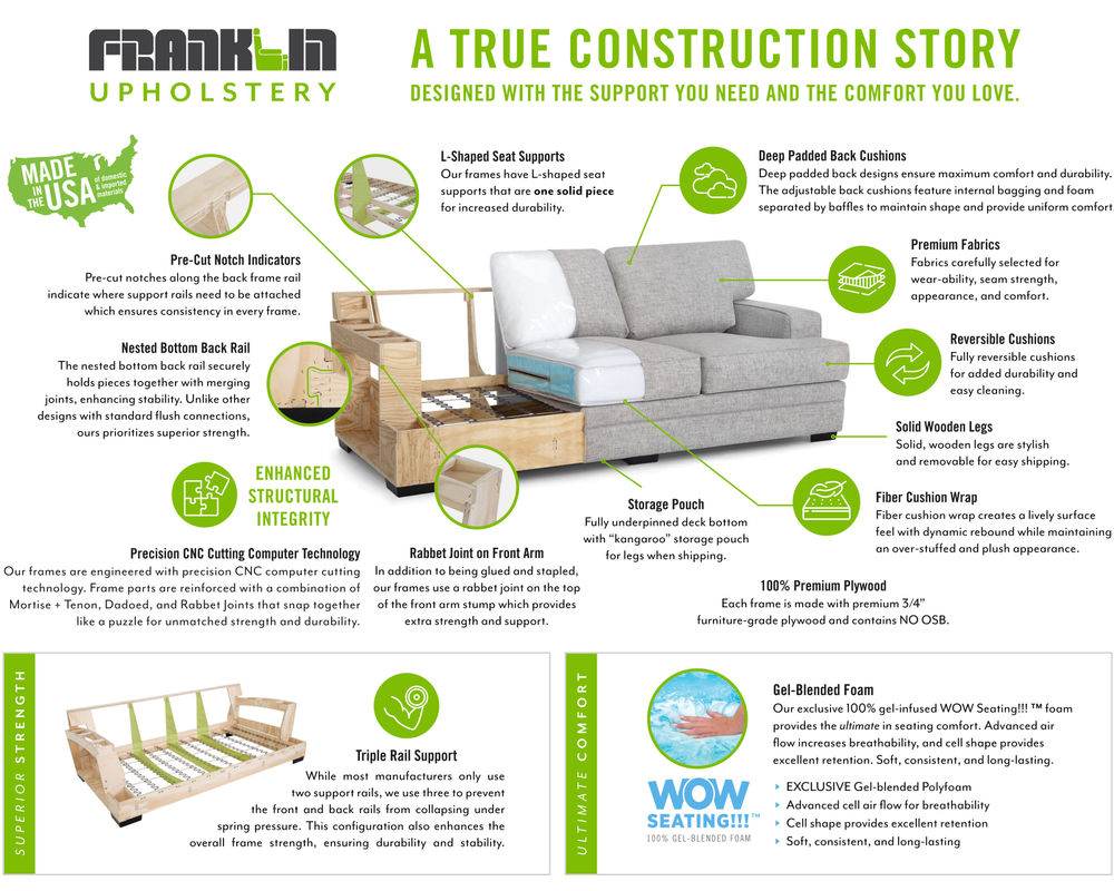 At Franklin we are passionate about our product. Quality is not just a word to us, but an obsession. We fabricate our own foam, stamp our own reclining mechanisms, and cut our own wooden frames. We stand behind our product and that is why we are able to offer you the best warranty in the industry.