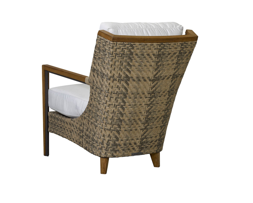 All of the fine details in this collection point to a decidedly modern aesthetic. The deep seating features a herringbone weave of synthetic wicker in an aged gray color with taupe undertones and are accented with teak wood. The tables showcase the architectural feeling of this collection with free floating teak top supported by exposed aluminum legs.