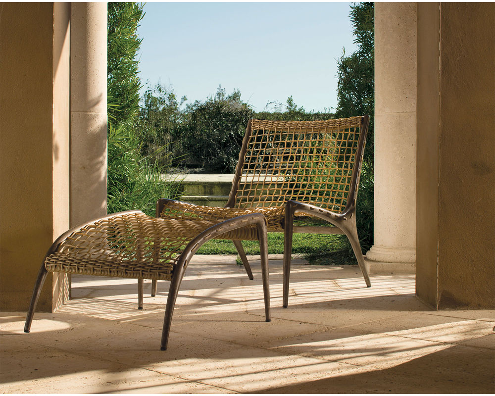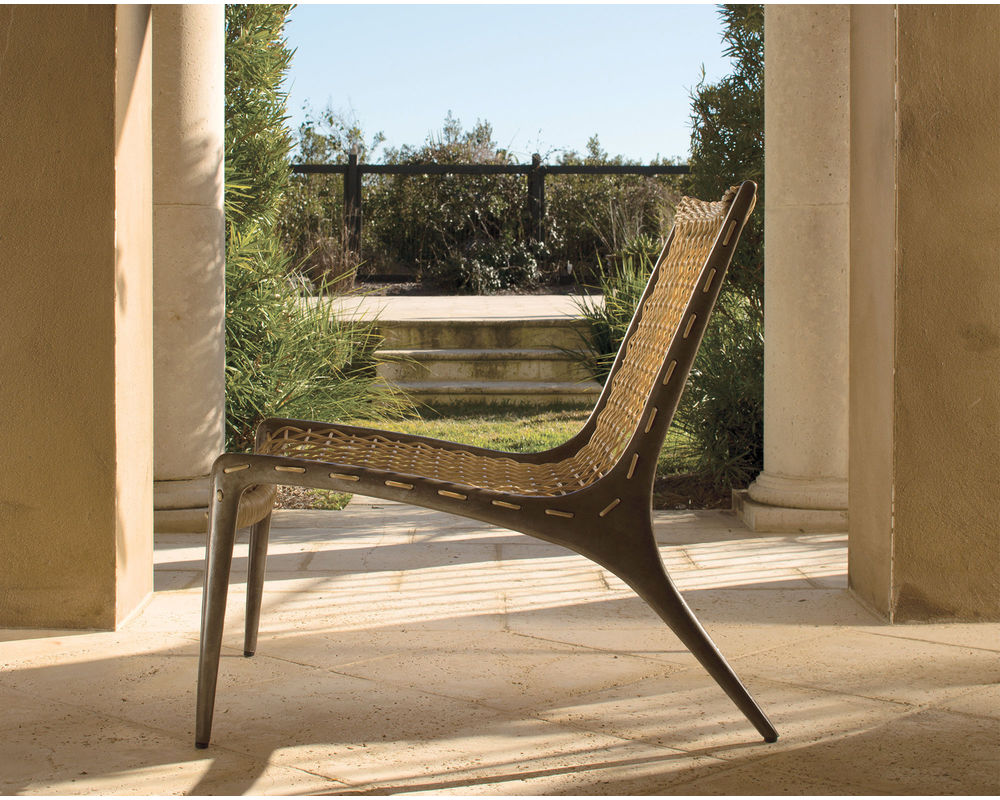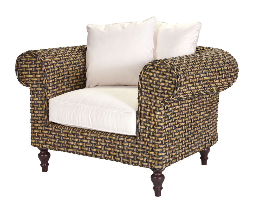 • The frame is constructed of rust and mildew resistant premium cast aluminum with a powder-coated finish. • Weather-resistant, high UV polyethylene synthetic fiber is hand-woven over for a natural woven look. • Has a matching Canted Ottoman • The finish is a hammered "Gun Metal". Only available as shown.