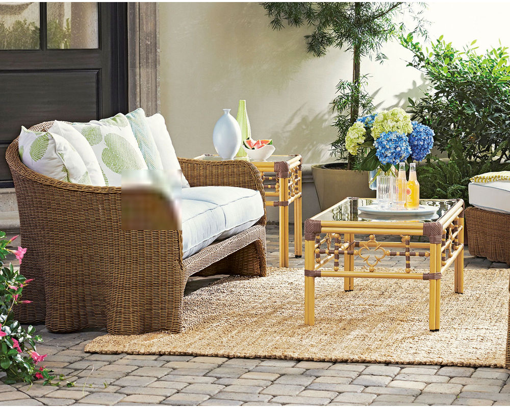 Inspired by vintage Palm Beach style, our Mimi sofa by Celerie Kemble is eloquent with details that are flirtatious, whimsical and feminine. Made from the highest quality of extruded aluminum, the powder coated frame is hand- finished to resemble natural rattan and can stand up to any type of weather. The iconic quatrefoil design of this style is a symbolic nod to the abundance of flowers that are part of everyday life in the south Florida paradise.