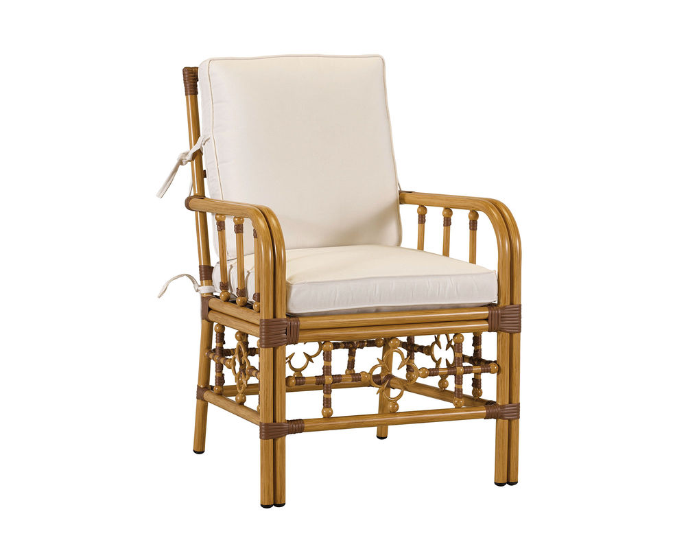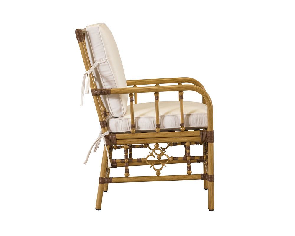 Inspired by vintage Palm Beach style, our Mimi sofa by Celerie Kemble is eloquent with details that are flirtatious, whimsical and feminine. Made from the highest quality of extruded aluminum, the powder coated frame is hand- finished to resemble natural rattan and can stand up to any type of weather. The iconic quatrefoil design of this style is a symbolic nod to the abundance of flowers that are part of everyday life in the south Florida paradise. Plush seating featuring the WeatherMaster ultimate outdoor cushion makes this classic sofa the favorite seat in any outdoor room.