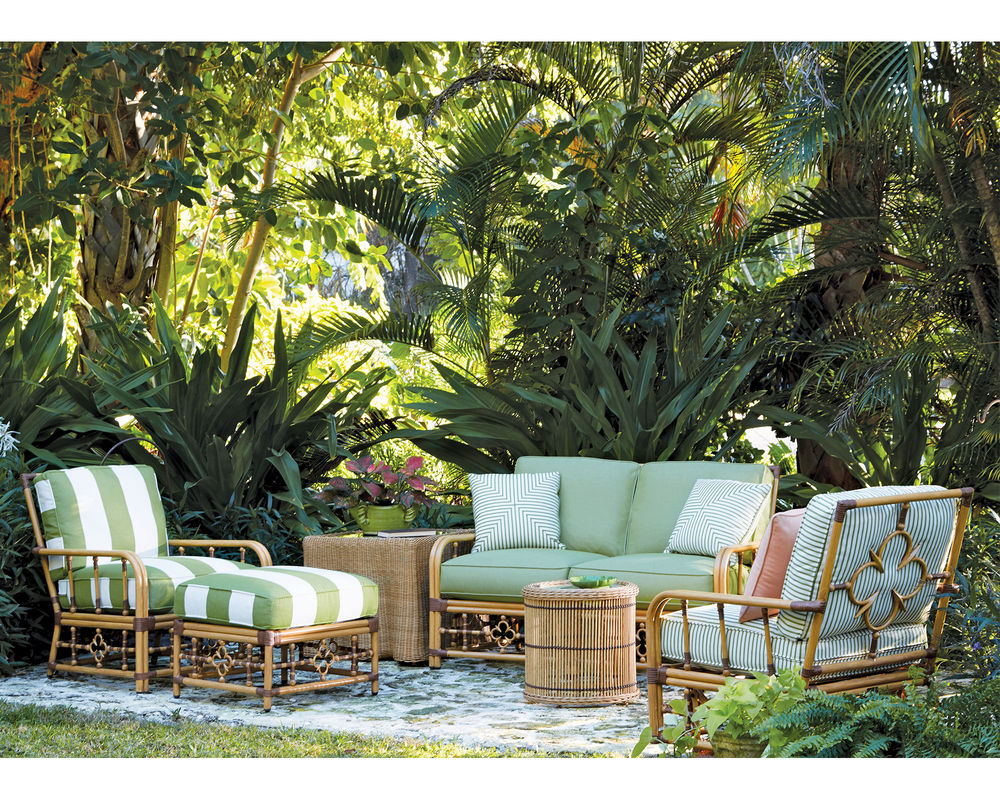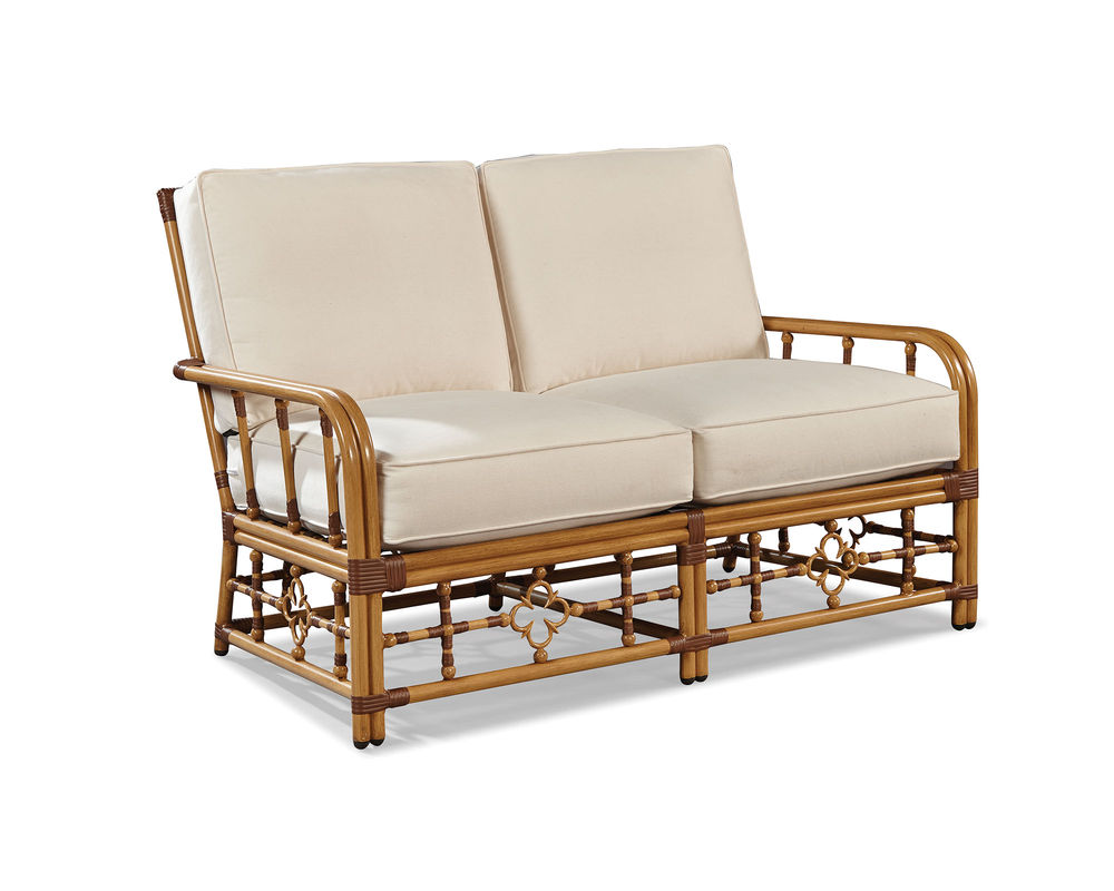 Mimi by Designer Celerie Kemble Loveseat Inspired by vintage Palm Beach style, our Mimi sofa by Celerie Kemble is eloquent with details that are flirtatious, whimsical and feminine. Made from the highest quality of extruded aluminum, the powder coated frame is hand- finished to resemble natural rattan and can stand up to any type of weather. The iconic quatrefoil design of this style is a symbolic nod to the abundance of flowers that are part of everyday life in the south Florida paradise. Plush seating featuring the WeatherMaster ultimate outdoor cushion makes this classic loveseat the favorite seat in any outdoor room.