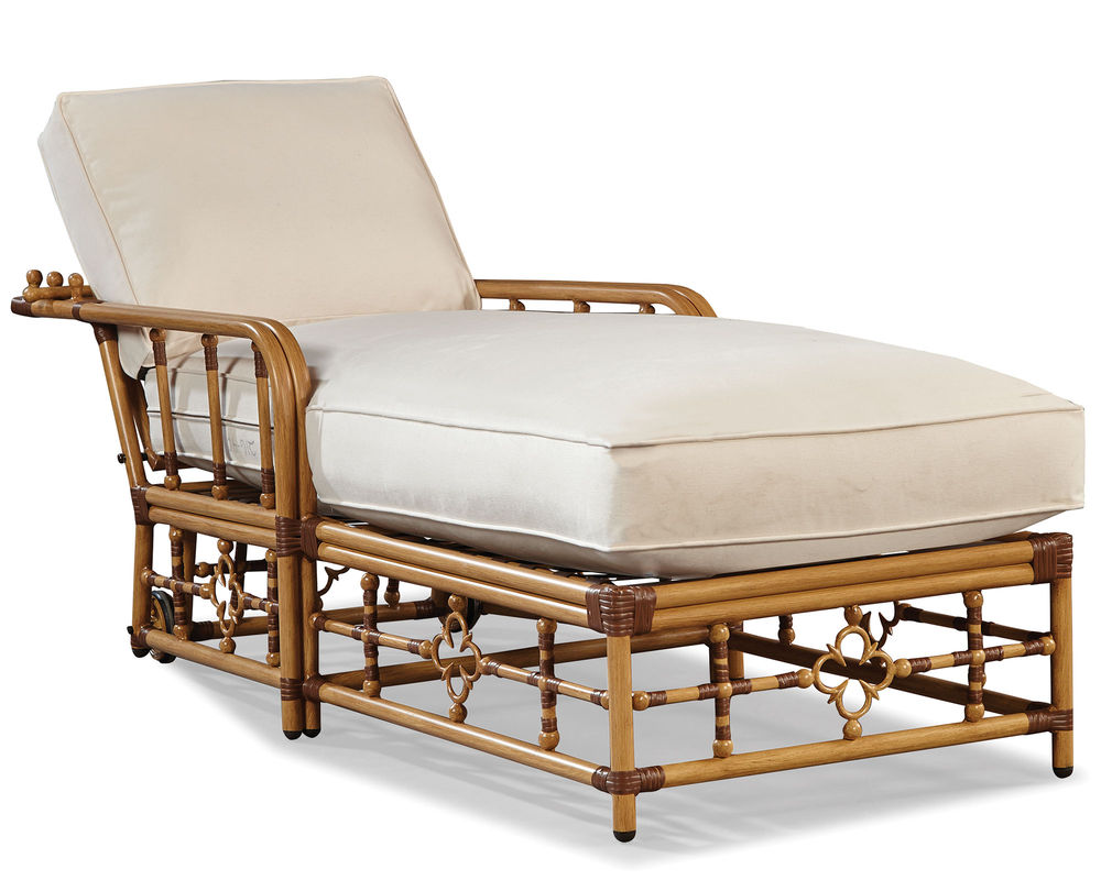 Mimi by Designer Celerie Kemble Chaise Lounge Inspired by vintage Palm Beach style, our Mimi sofa by Celerie Kemble is eloquent with details that are flirtatious, whimsical and feminine. Made from the highest quality of extruded aluminum, the powder coated frame is hand- finished to resemble natural rattan and can stand up to any type of weather. The iconic quatrefoil design of this style is a symbolic nod to the abundance of flowers that are part of everyday life in the south Florida paradise. Plush seating featuring the WeatherMaster ultimate outdoor cushion makes this classic chaise lounge the favorite seat in any outdoor room.