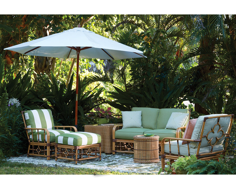 Inspired by vintage Palm Beach style, our Mimi sofa by Celerie Kemble is eloquent with details that are flirtatious, whimsical and feminine. Made from the highest quality of extruded aluminum, the powder coated frame is hand- finished to resemble natural rattan and can stand up to any type of weather. The iconic quatrefoil design of this style is a symbolic nod to the abundance of flowers that are part of everyday life in the south Florida paradise.