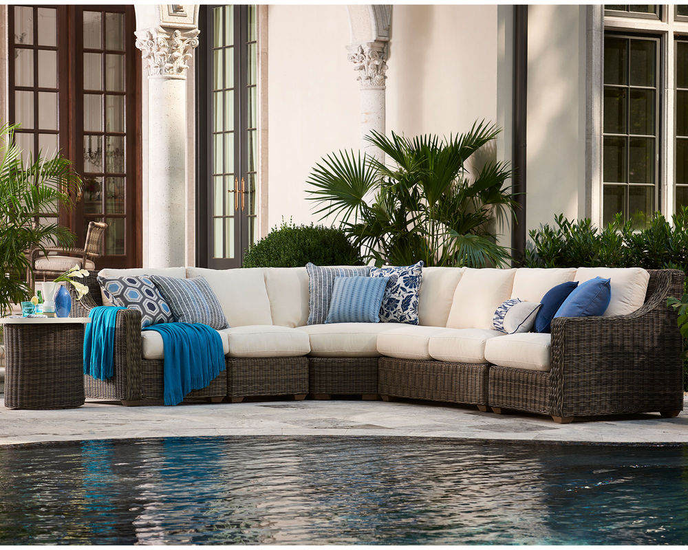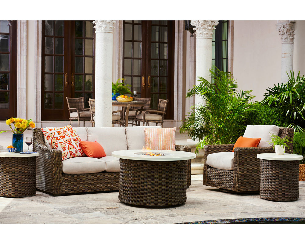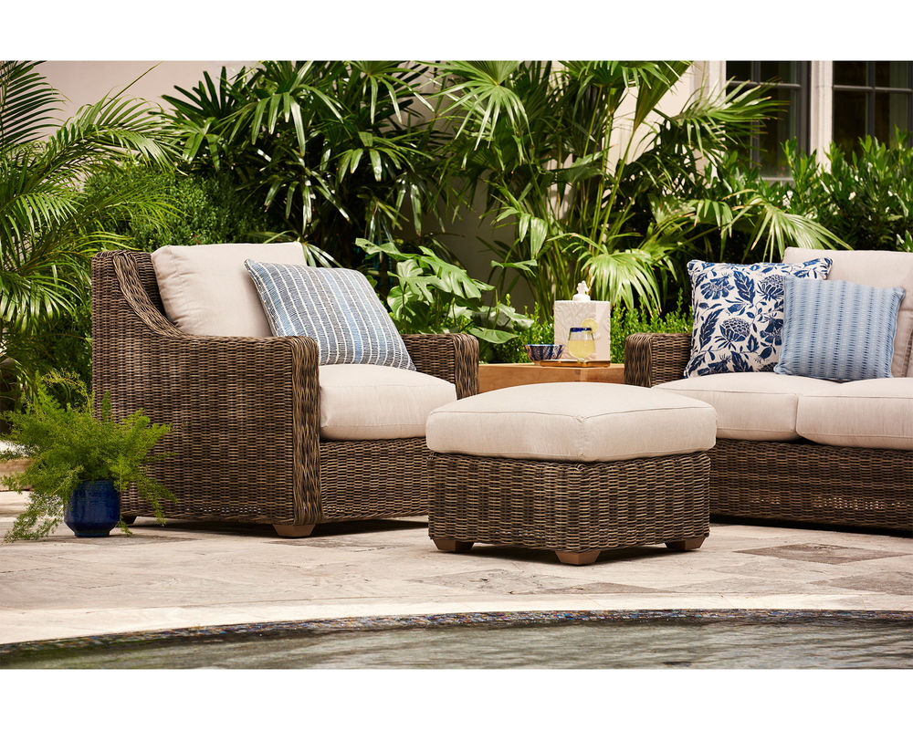 Features • The frame is constructed of rust and mildew resistant premium aluminum with a powder-coated finish. • Weather-resistant, high UV polyethylene synthetic fiber is hand-woven over premium aluminum frame for a natural woven look. • Removable cushions feature the exclusive LANE VENTURE Ultimate WeatherMaster drainable cushions for soft seating and durability of a drainable all-weather fiber cushion plus, the comfort and longevity of spring coil seating. Box weltless cushions with • Cushions are available in all LANE VENTURE stain and mildew-resistant solution dyed fabrics. • Available only Ash finish as shown.