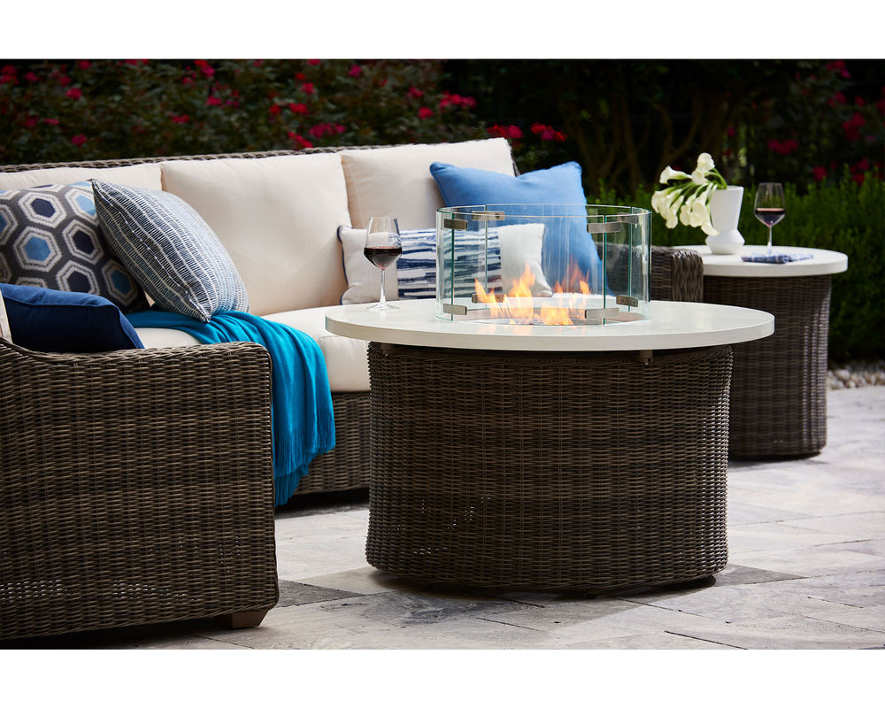 Variegated tones of warm Ash gray synthetic material will blend nicely with many home styles when you select our Oasis collection for your outdoor living space. The unmatched deep seating comfort of this collection comes from the WeatherMaster Ultimate outdoor cushion and will give you years of relaxed comfort. The classic basketweave styling of this collection is hand-woven over a durable, premium powder-coated aluminum frame. The frame's double-wall design is showcased by the decorative plaited chevron design and highlights a comfortable wide track arm.