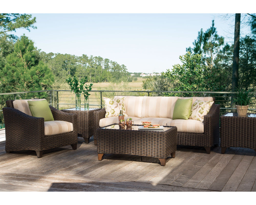 • The frame is constructed of rust and mildew resistant premium aluminum with a powder-coated finish. • Weather-resistant, high UV polyethylene synthetic fiber is hand-woven over premium aluminum frame for a natural woven look. • Removable cushions feature the exclusive LANE VENTURE Ultimate WeatherMaster drainable cushions for soft seating and durability of a drainable all-weather fiber cushion plus, the comfort and longevity of spring coil seating. Box-weltless cushions with • Cushions are available in all LANE VENTURE stain and mildew-resistant solution dyed fabrics. • 2 finishes are available: Macchiato, a traditional rich brown and Bone, a coastal on-trend gray finish.