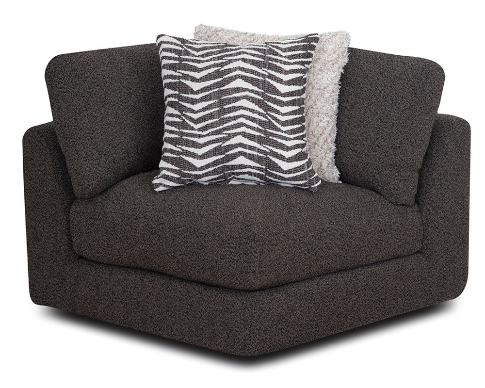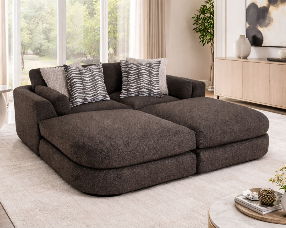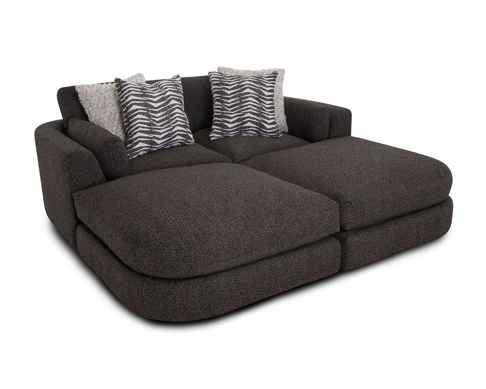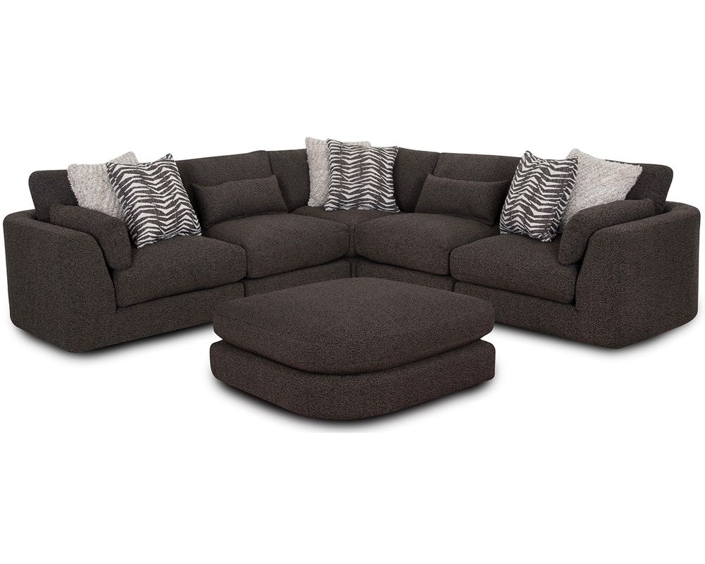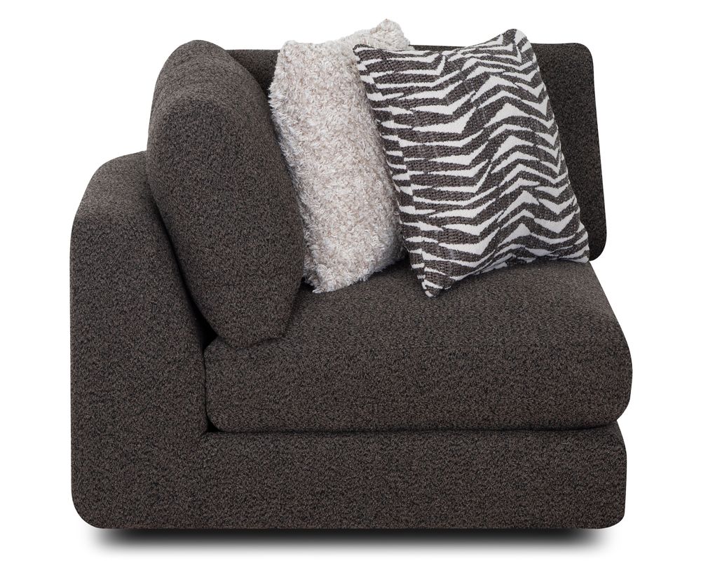 The Laney 938 Modular Sectional from Franklin Furniture combines luxurious comfort with unmatched versatility to elevate your living space. Upholstered in a rich, dark textured fabric, the Laney adds depth and sophistication while maintaining a warm, inviting feel. Its plush modular design allows you to create the ideal configuration for lounging, entertaining, or stretching out in total comfort. Coordinating accent pillows — featuring a mix of abstract stripe patterns and soft, boucle-inspired textures — add dimension and a modern, designer touch.