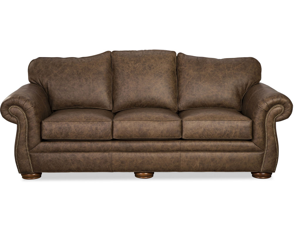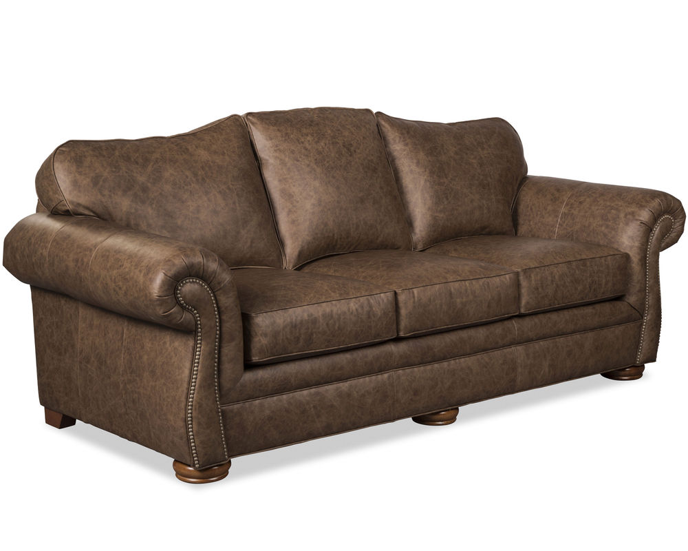 The Laredo 2685 Leather Sofa is a timeless classic that adds a luxurious touch to any living room. This three-seat sofa features beautiful Bombay-shaped arms with nail head trim and a graceful camel back. Notice the casual bun feet and plush attached backs for easy maintenance. Blend Down Coil seat cushions provide a comfortable feel for hours of relaxation.
