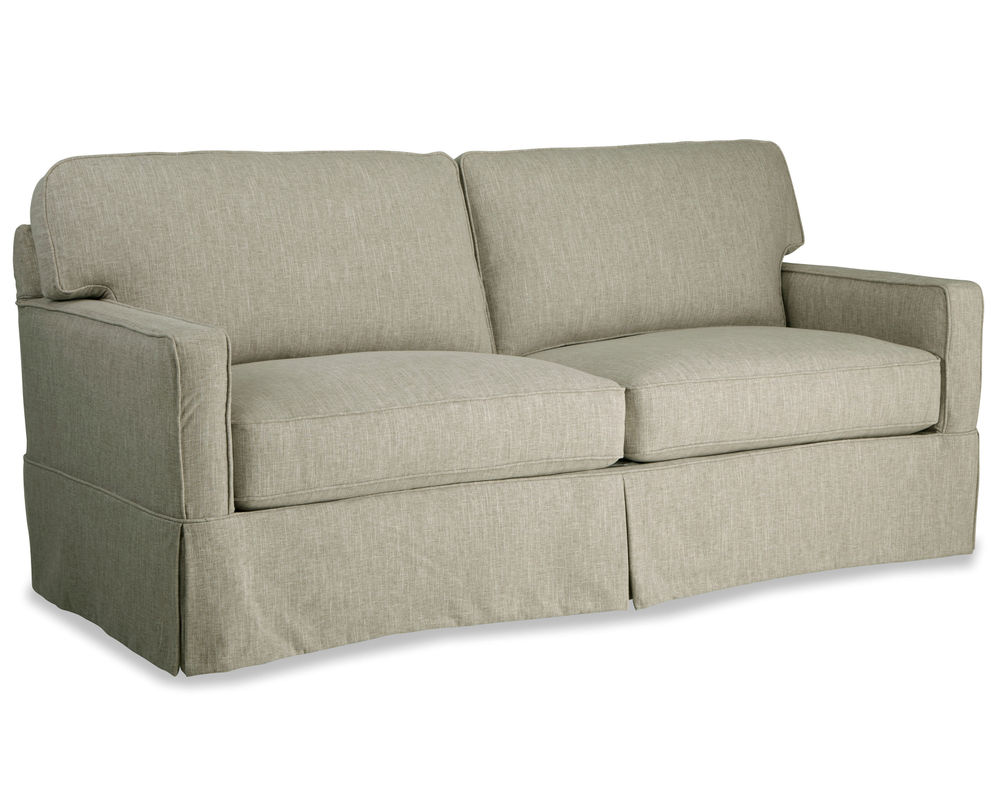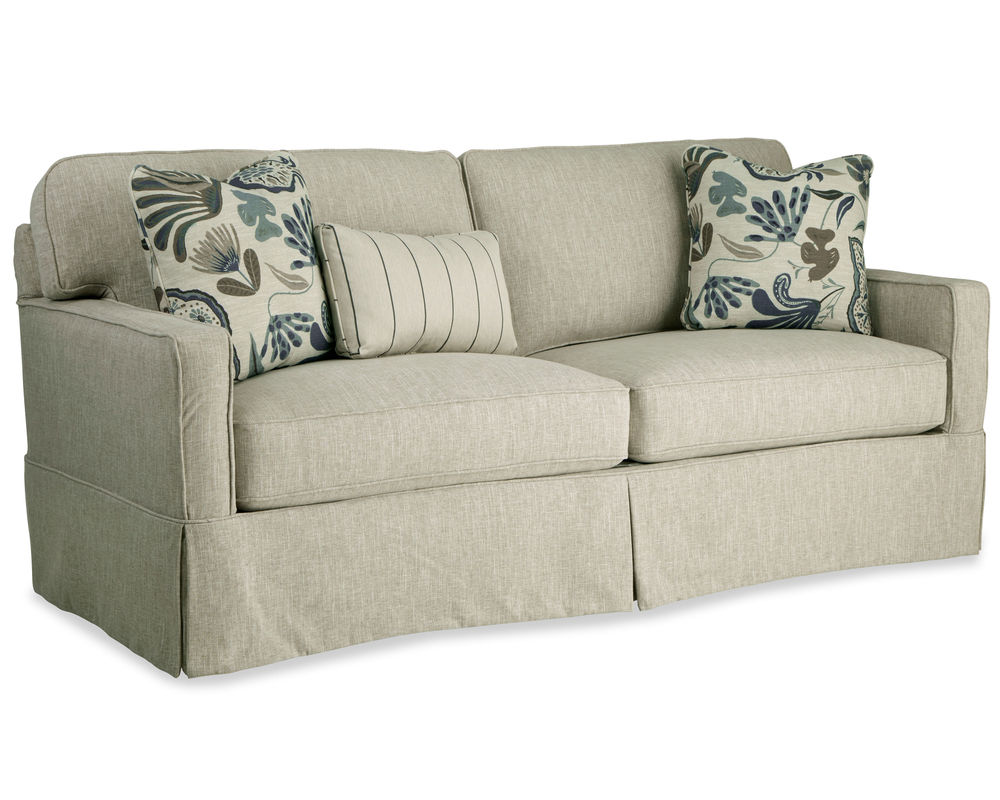 This sofa's modern and casual vibe is completed with track arms and a relaxed waterfall skirt. This adds a touch of elegance to the overall design, making it a perfect fit for any living space. To create a cohesive look, the Laurel 9374 Slipcover Sofa is also available in a matching loveseat, chair, and ottoman.