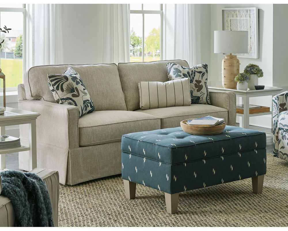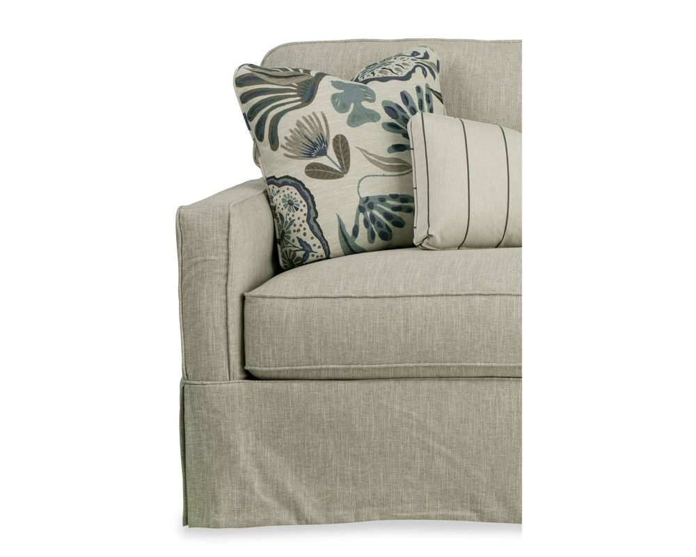 The Laurel 9374 Slipcover Sofa boasts loose box border backs and plush Blend Down seat cushions for ultimate comfort. These features provide an extraordinary seating experience, perfect for lounging and relaxing. The sofa also comes with two Blend Down toss pillows and one kidney pillow to add a welcoming touch.