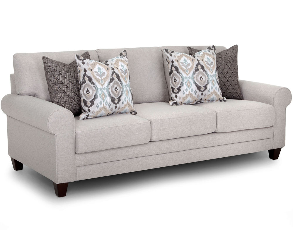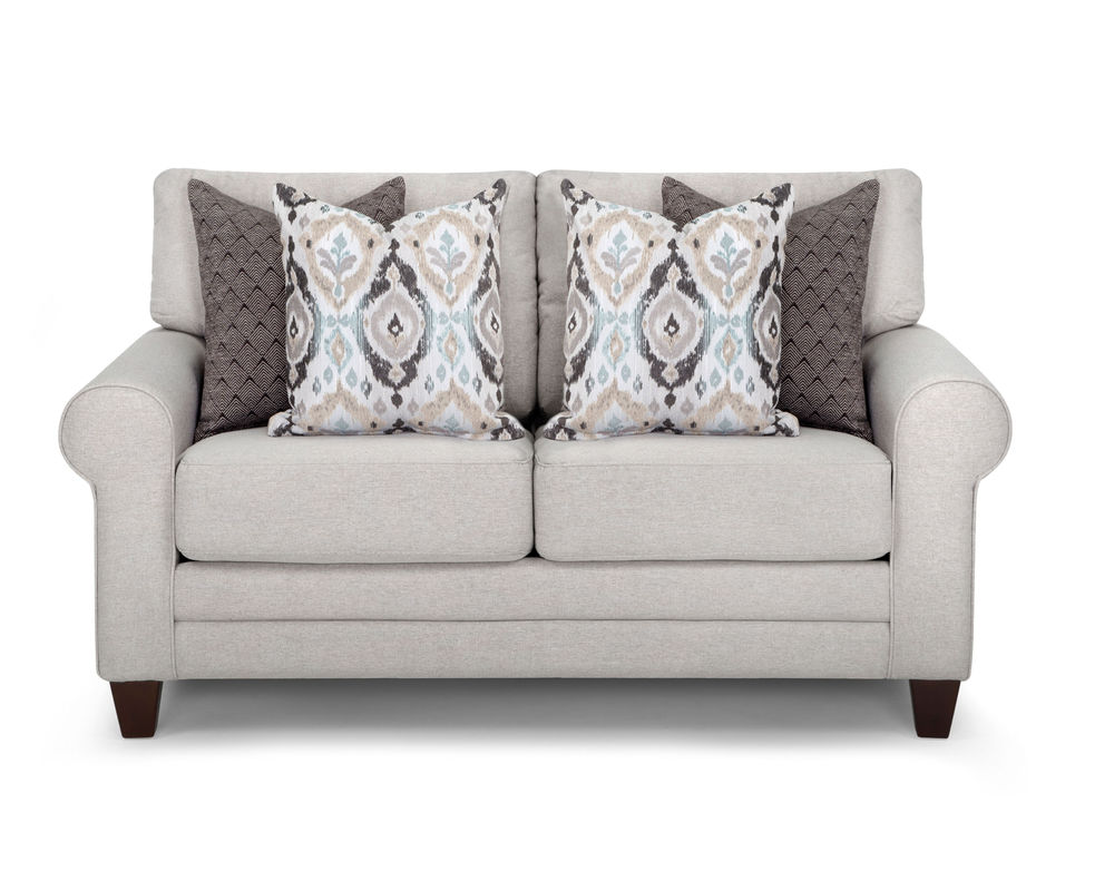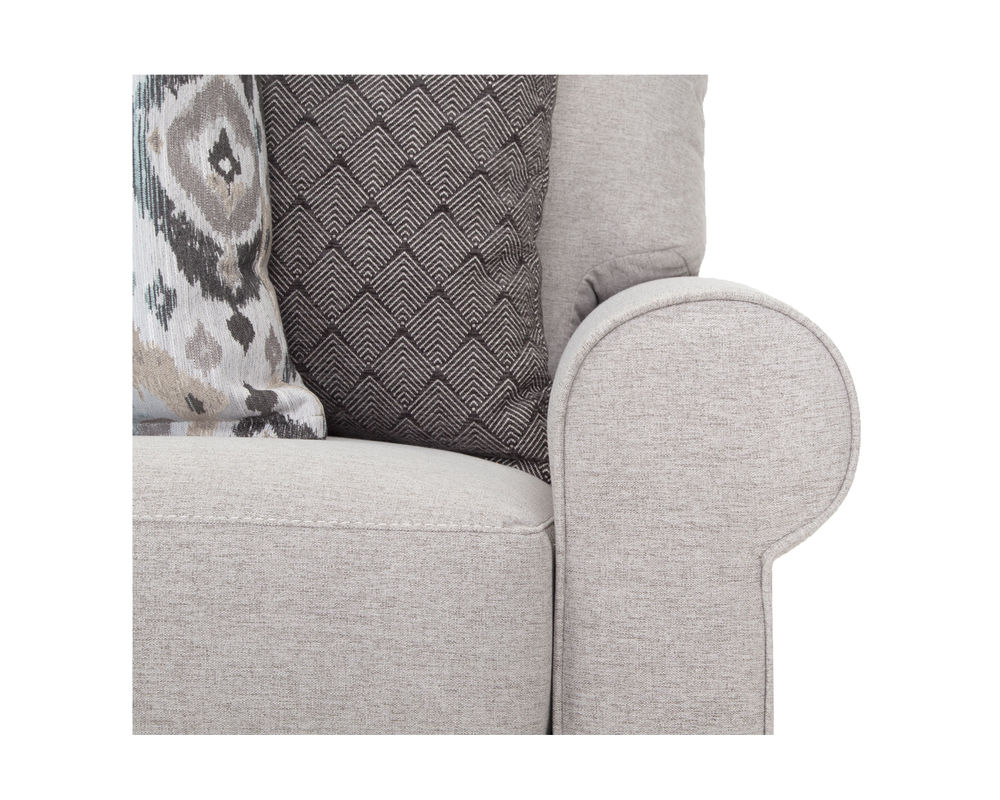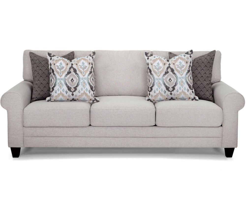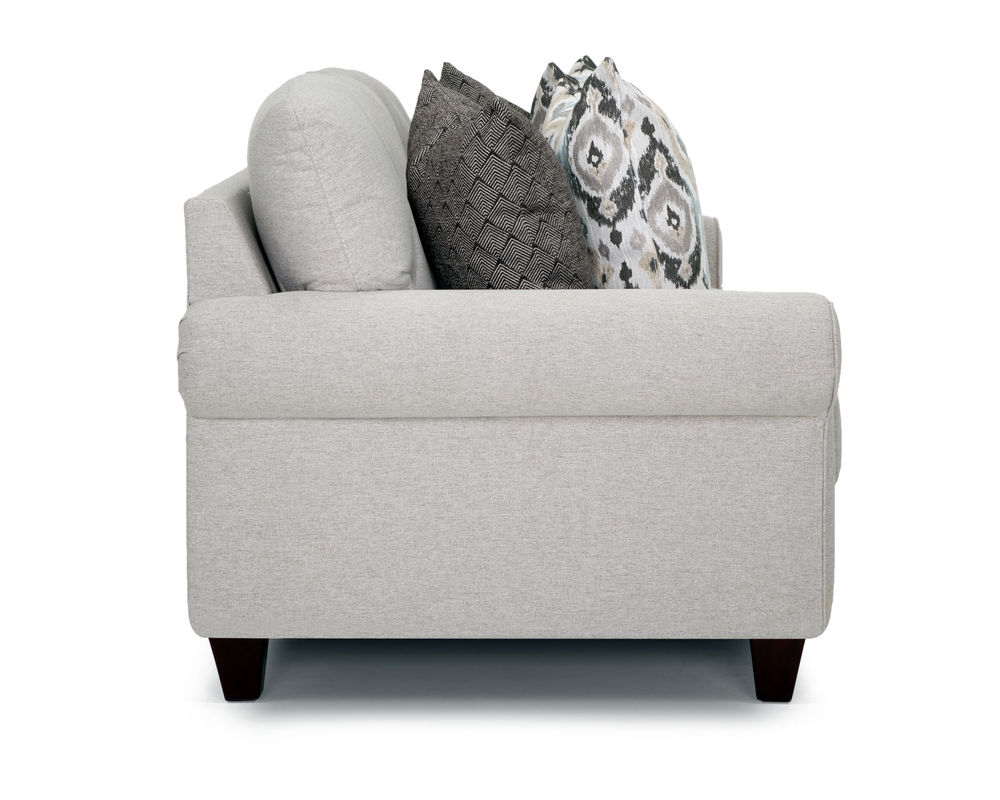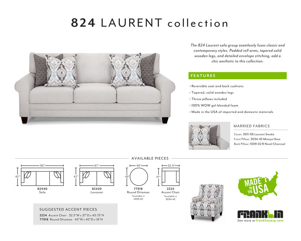 Introducing the perfect combination of classic and contemporary design - the Laurent 824 Sofa. This stunning piece features padded roll arms, tapered wooden legs, and exquisite envelope stitching that adds a touch of sophistication to any living space. The Laurent collection also includes an accent chair in Mineya Haze, a gorgeous pattern in muted shades of teal, tan, cream, and black, as well as a round ottoman in Novel Charcoal, a mesmerizing diamond pattern in black and cream. With its chic aesthetic and high-quality construction, the Laurent 824 Sofa will surely be a standout piece in any home. Whether entertaining guests or relaxing after a long day, this sofa offers style and comfort. Upgrade your living room with the elegant and timeless Laurent 824 Sofa.