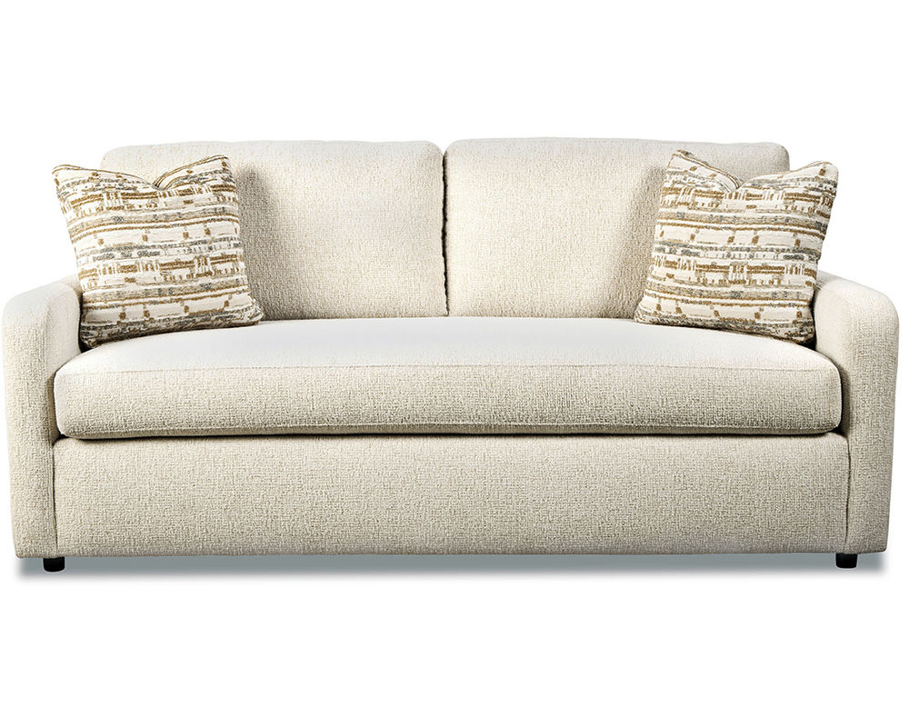 ■ Reverse-sloped arms add a modern twist to the streamlined silhouette