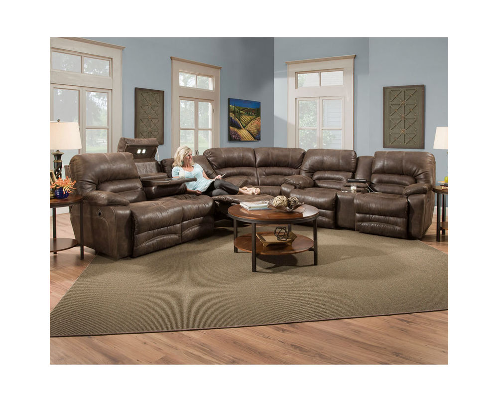 The Legacy 500 Reclining Sectional boasts a unique design that differentiates it from traditional sectionals. Its reclining sofa has a hidden table and lights, perfect for those cozy movie nights at home. The reclining loveseat features a convenient console with cupholders, making it easy to enjoy your favorite snacks and drinks while relaxing.