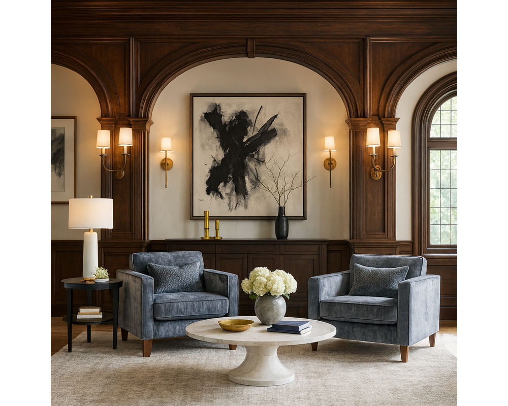 The Lennox Chair blends clean lines with plush comfort, making it the perfect accent piece for any living space. Featuring contemporary track arms and tapered exposed wood legs, this chair exudes sophistication while offering everyday durability. Its Comfort Blend seat cushion—crafted with a 2.0 density, high-resilience foam core and wrapped in ultracell foam—ensures lasting support with a soft, inviting feel.