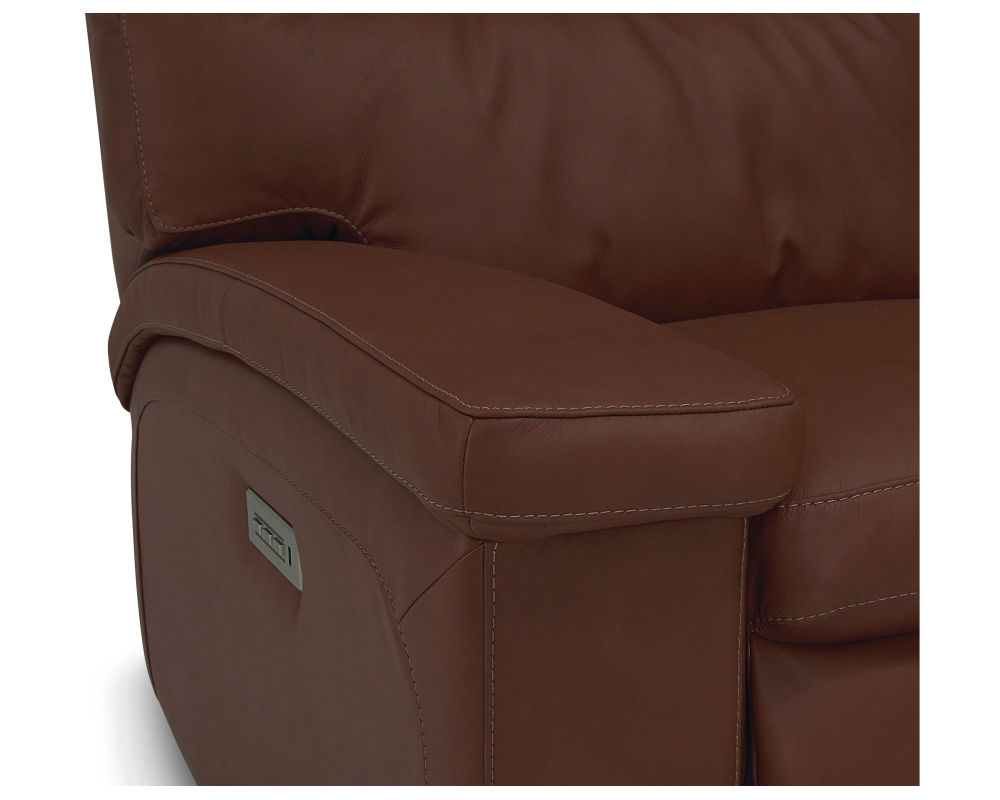 • Power recline and power headrests operated by a brushed metal power switch with integrated USB charging