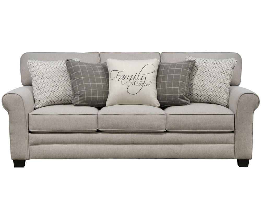 Introducing the Jackson Furniture Lewiston 85" Sofa, perfect for bringing a touch of Farmhouse Casual style to your living space. This sofa is crafted with a soft heathered polyester body fabric, complete with pillows, and boasts a traditional sock arm design with wooden legs. This piece of furniture provides both comfort and style, making it the ideal addition to any home. Whether you're looking to sink into the sofa after a long day, or simply want to spruce up your living room with a new addition, the Jackson Furniture Lewiston 85" Sofa is the perfect choice.