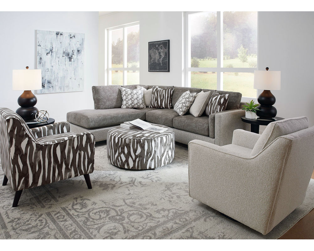 Introducing the Lina Jet 39" Round Cocktail Ottoman - the perfect addition to your living space! This multi-functional ottoman is stylish and fun with its unique fabric and is highly practical and versatile. Whether you need extra seating for guests or a surface to serve drinks and snacks, this ottoman has covered you.